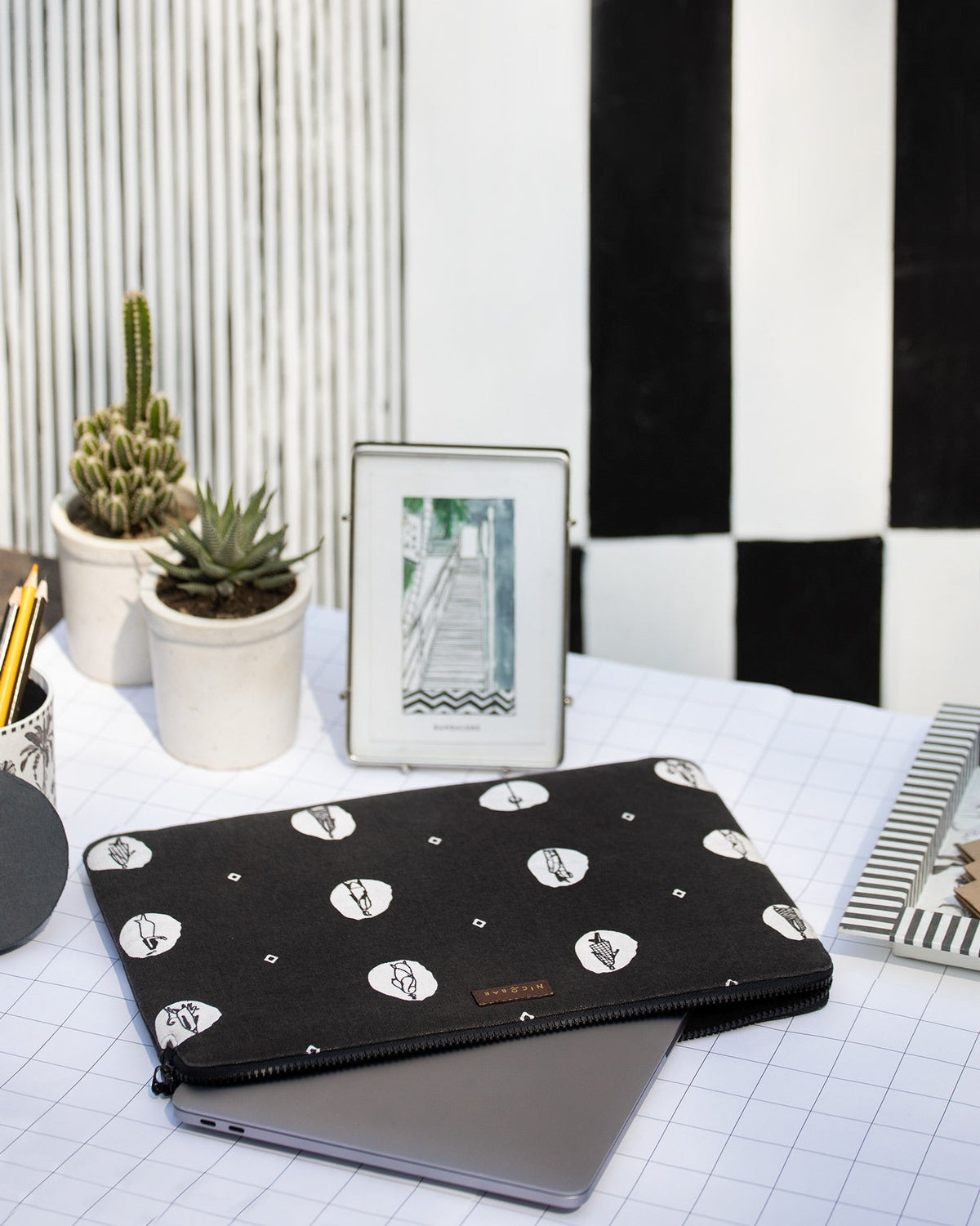 - Featuring lively motifs created by Sameer Kulavoor, this laptop sleeve is perfect for days around town