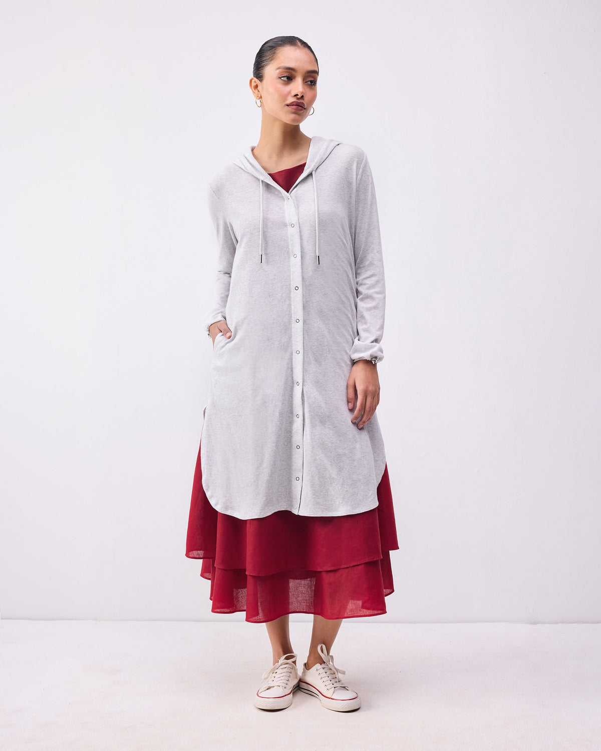 - The Airport Hoodie in Grey is made from 100% cotton single jersey in a soft grey.