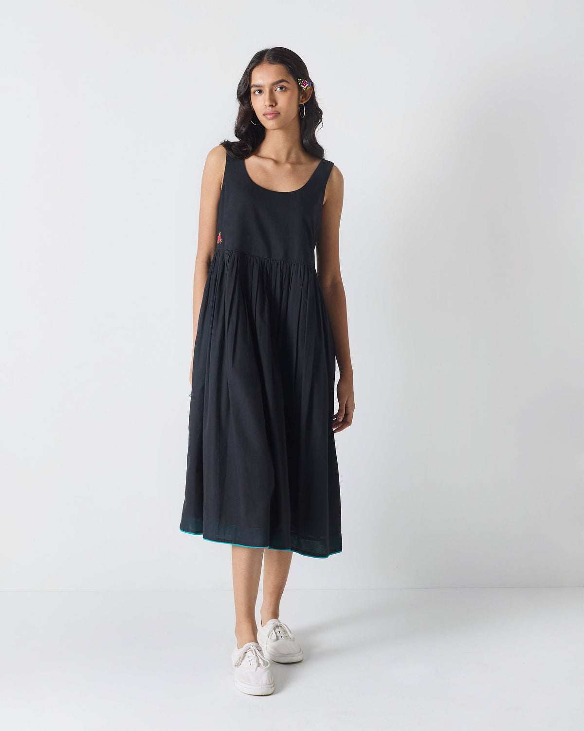 • The Ashwini Dress is a black, sleek and timeless piece crafted in soft yarn dyed cotton