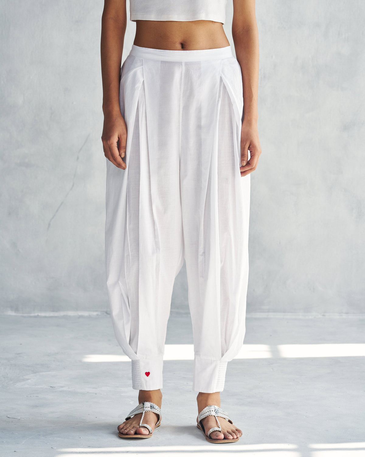 • The Puff Pants in white playfully combine a narrow fit with cheeky pocket details to keep you feeling bright and comfy.