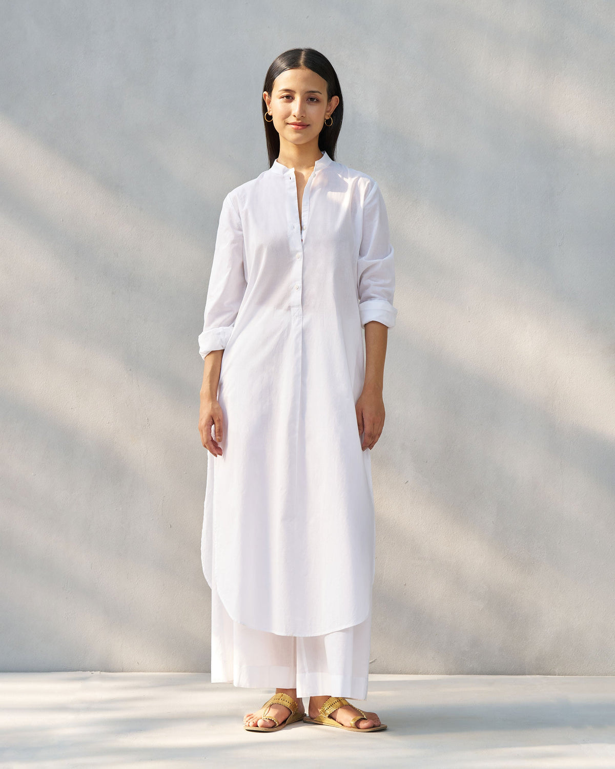 • A set of two of our signature styles, the Basic Long Kurta and the Basic Pyjama in white, the perfect pair for lounging.