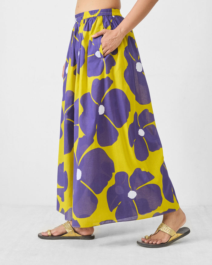 Yoi Hem Pants - Purple & Chartreuse Printed
