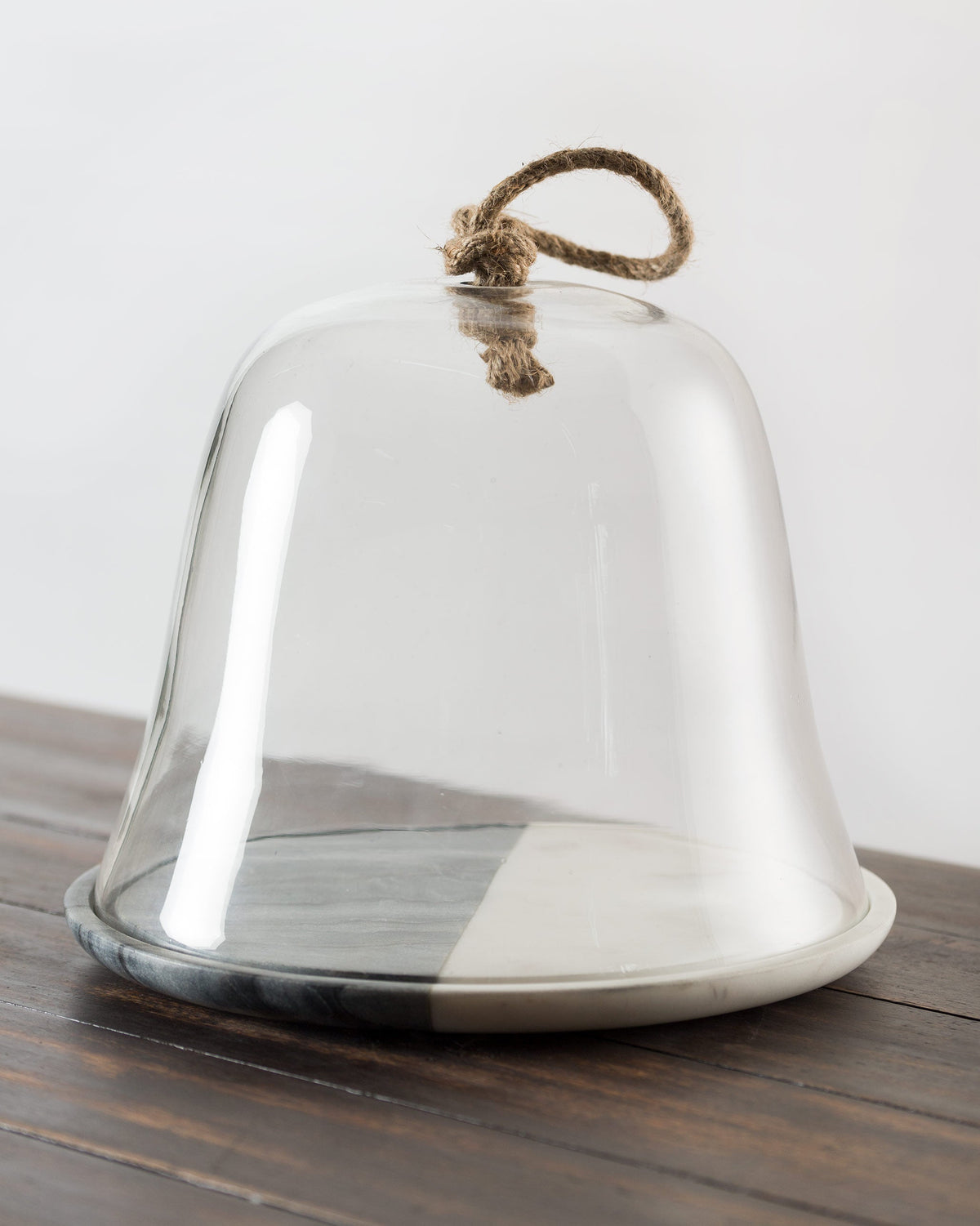 • With a tw-toned marble base and a glass dome topped with a little twine, this piece is perfect for housing desserts, cheese, or even your fruits