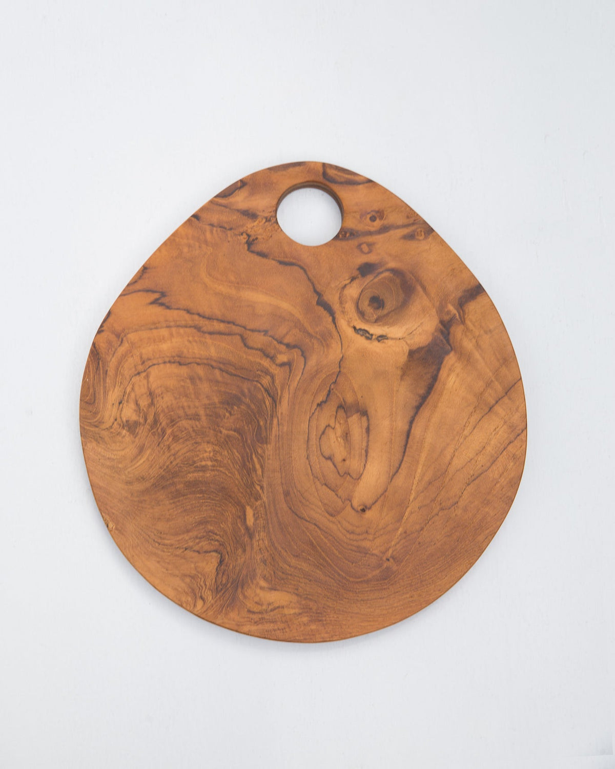 • Fashioned in wood from the roots of the teak tree, this is a board suited for all your chopping needs
