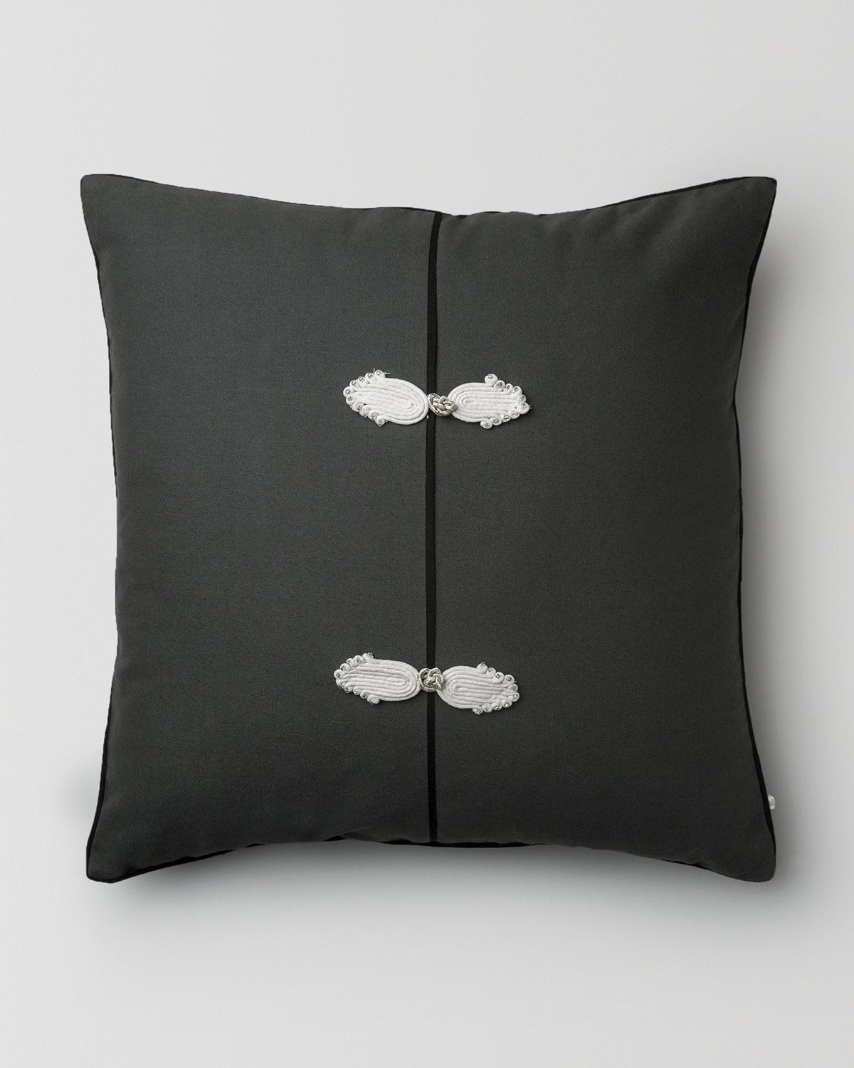 - Deep from the Orient, our Chinese Knot Cushion comes on a bed of delicious charcoal cotton, with similar-hued edging, iconic knots and gold buttons lining the front