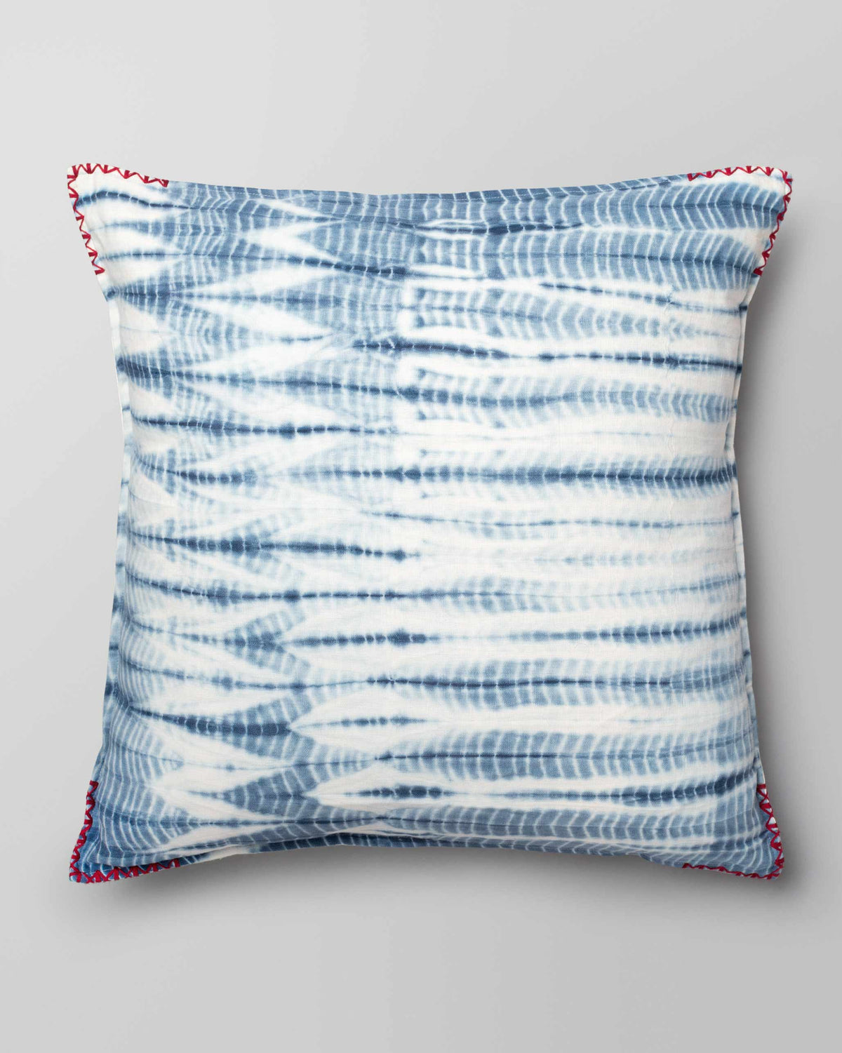 • We love tie-and-dye, and our Shibori inspired cushion cover features a hint of bright red stitching along the corners