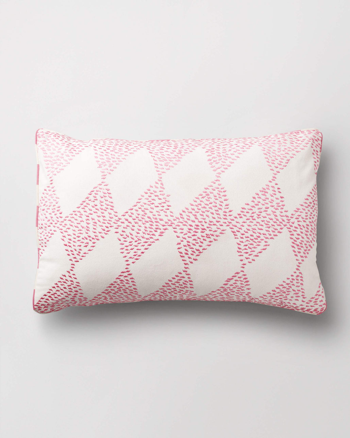 - A graphic pattern runs across dusty pink for an aesthetic that is understated and stylish
