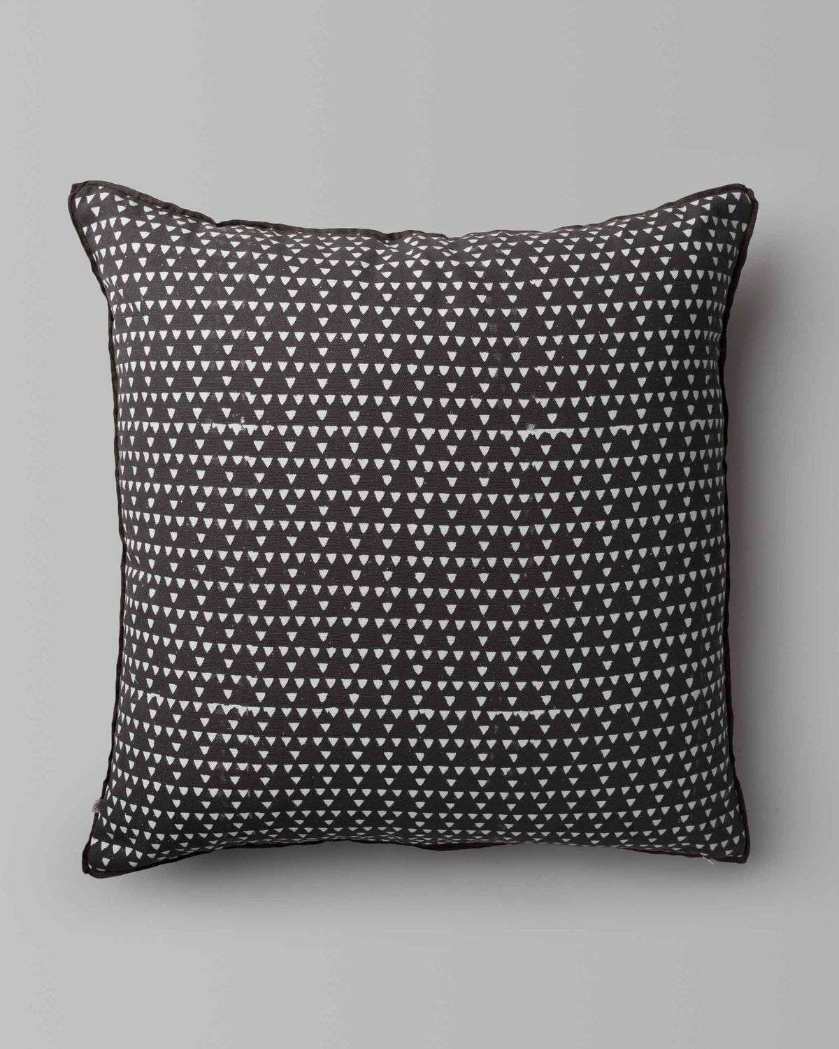 • This brown cushion features a deeper brown piping along the edges, and little white triangles, and it pairs well with our Koishi throw, and Sencha cushions