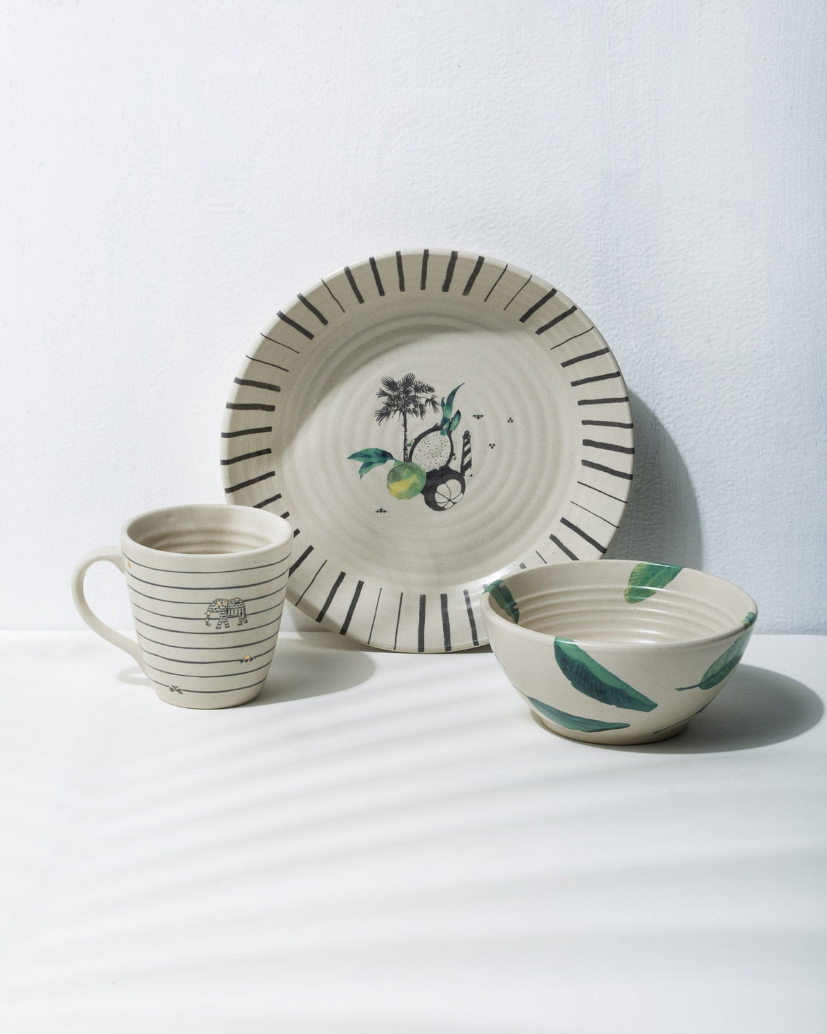 • Made from natural stoneware, and featuring beauitful botanicals and other isalnd motifs, this set is a keeper for many meals