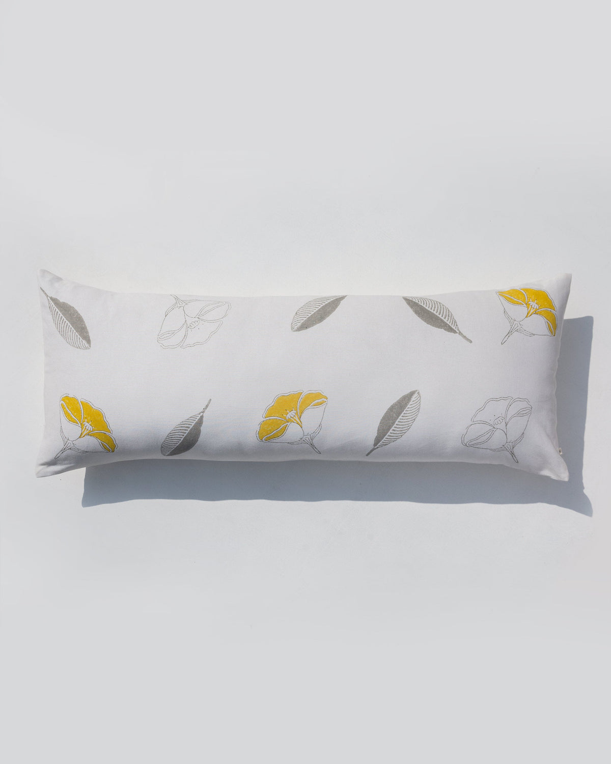 - Perfect to dress up a bed, a rug-kitted corner, or a diwan, this grey pillow cover features leaves and flowers with the slightest bit of sunshine yellow