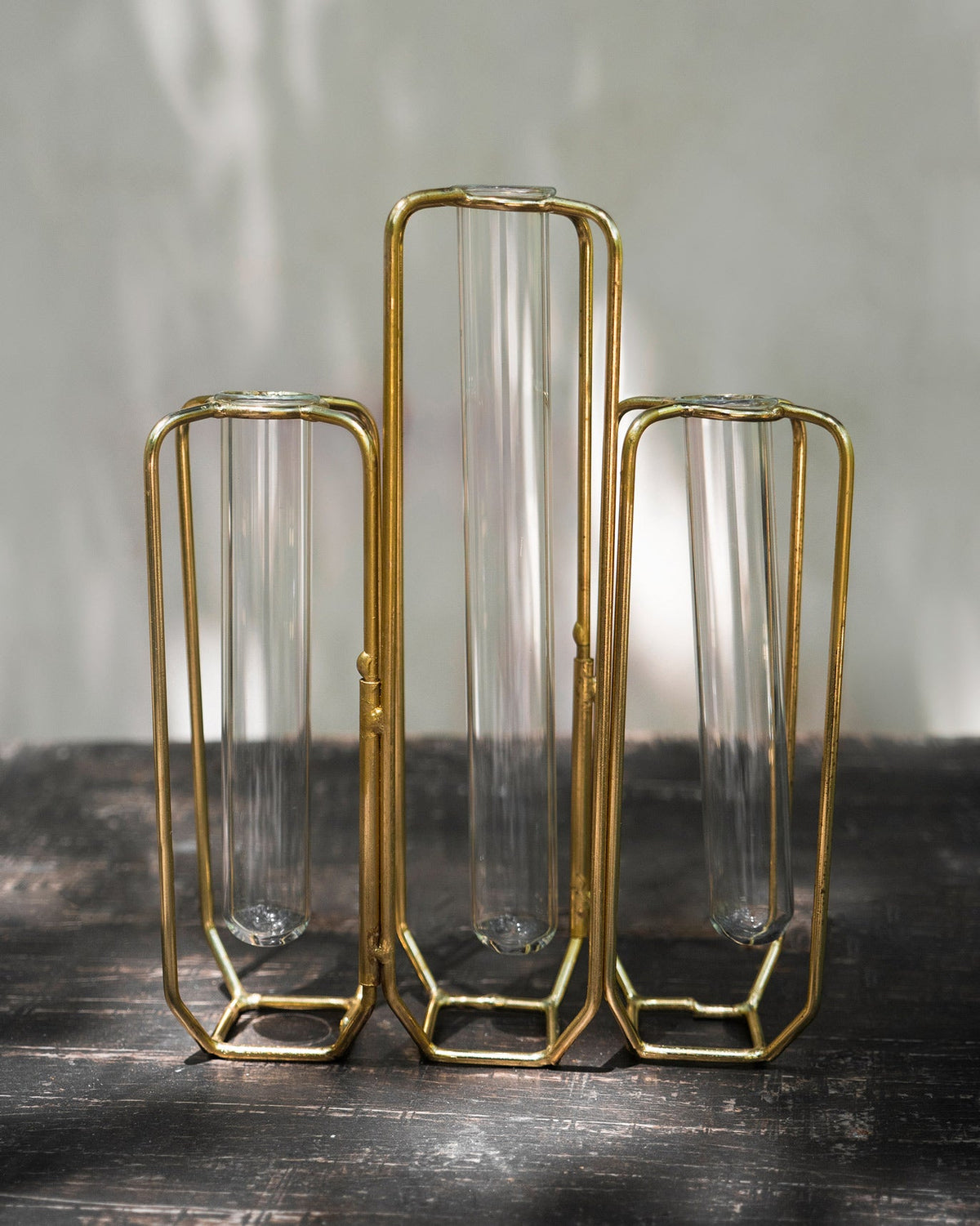 - Add a little flourish to your space with this test tube planter and holder set, crafted in glass and gleaming brass