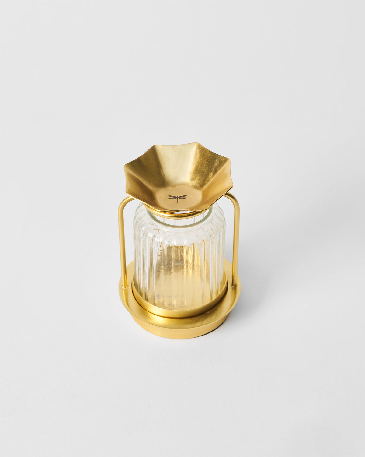 - A glass diffuser featuring a mini brass holder to pop your tealights in.