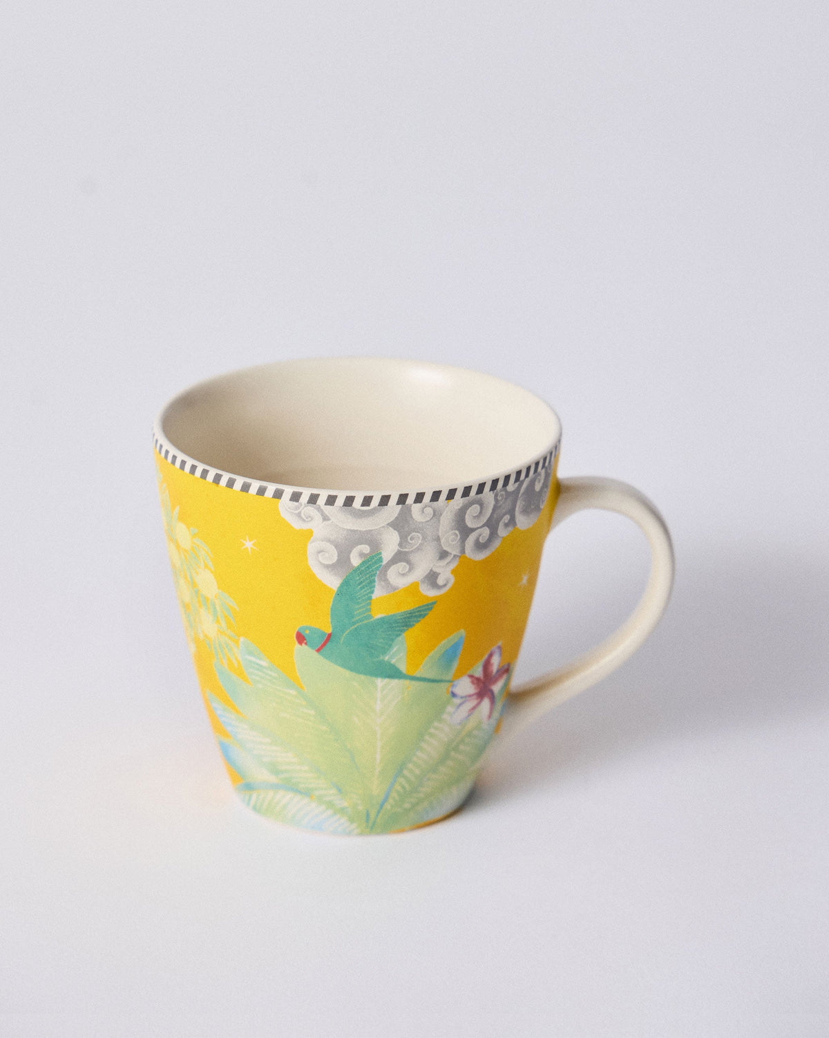 - Crafted in our signature stoneware the mug is festooned with prints and patterns inspired by our trips to the island.