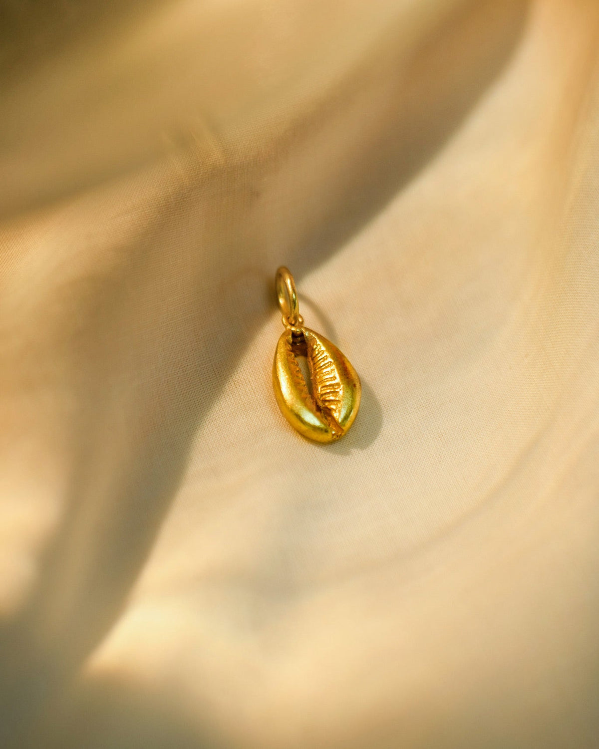 - Cast in brass and plated in gold, our shell charm was picked on a beach in the Maldives