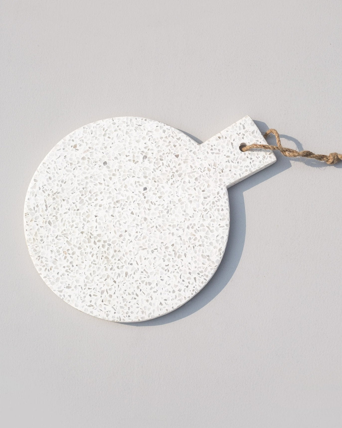- It comes in soothing ivory terazzo, a round shape and bits of twine.