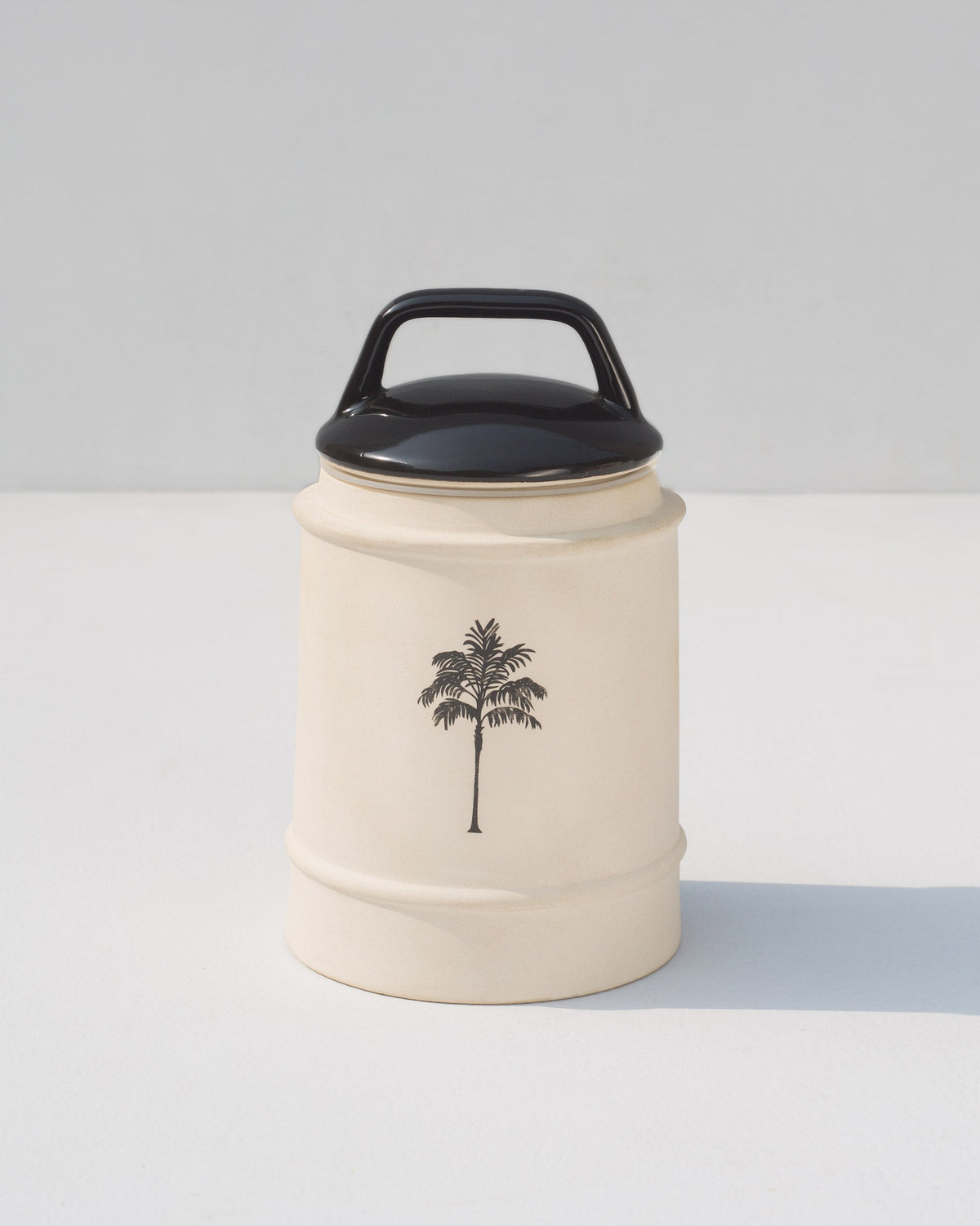 - Crafted in stone with an ivory finish and printed with a lone palm, our barnis can be used to store dry ingredients like candles and spices