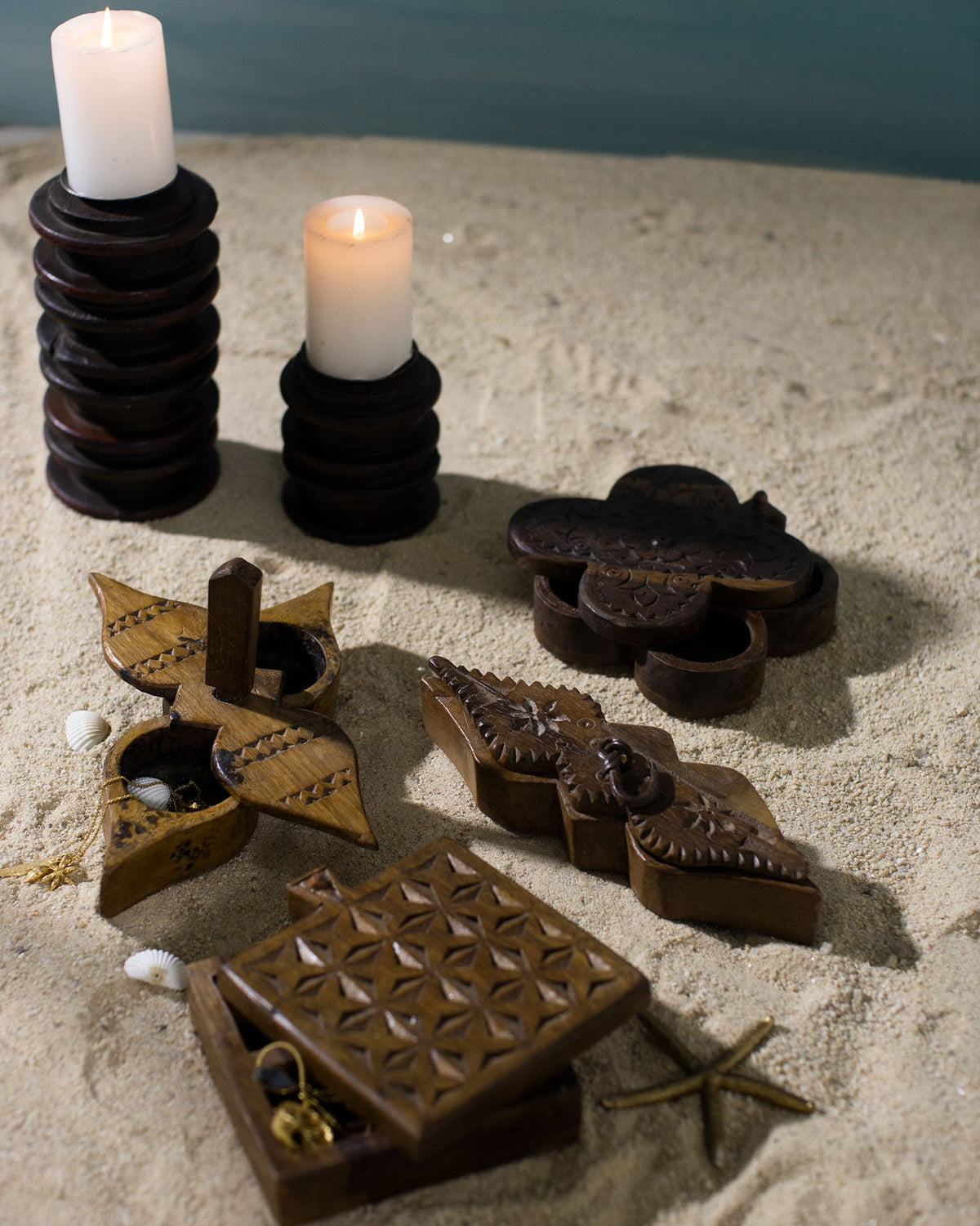 • Fashioned in wood, this box is crafted from Rajasthani found objects adding to its character