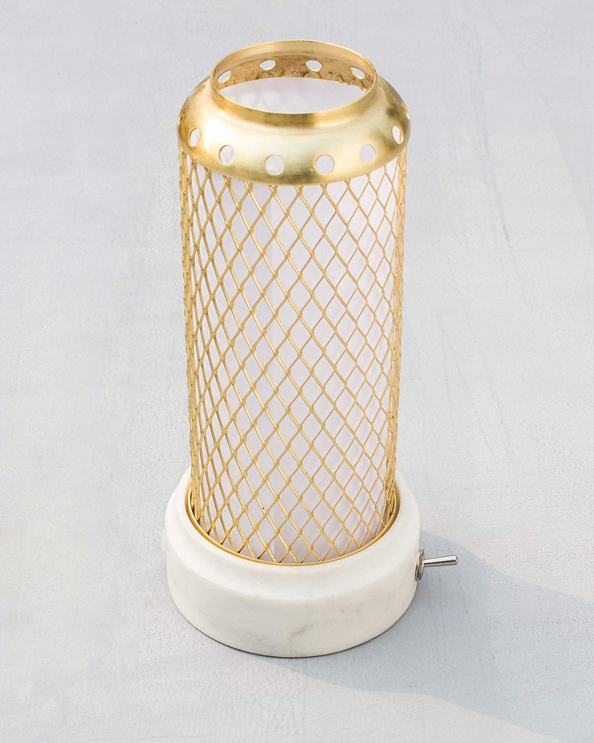 - With its white marble base and brass-toned iron mesh, the Dune lamp will cast a twinkling and diffuse glow wherever it sits