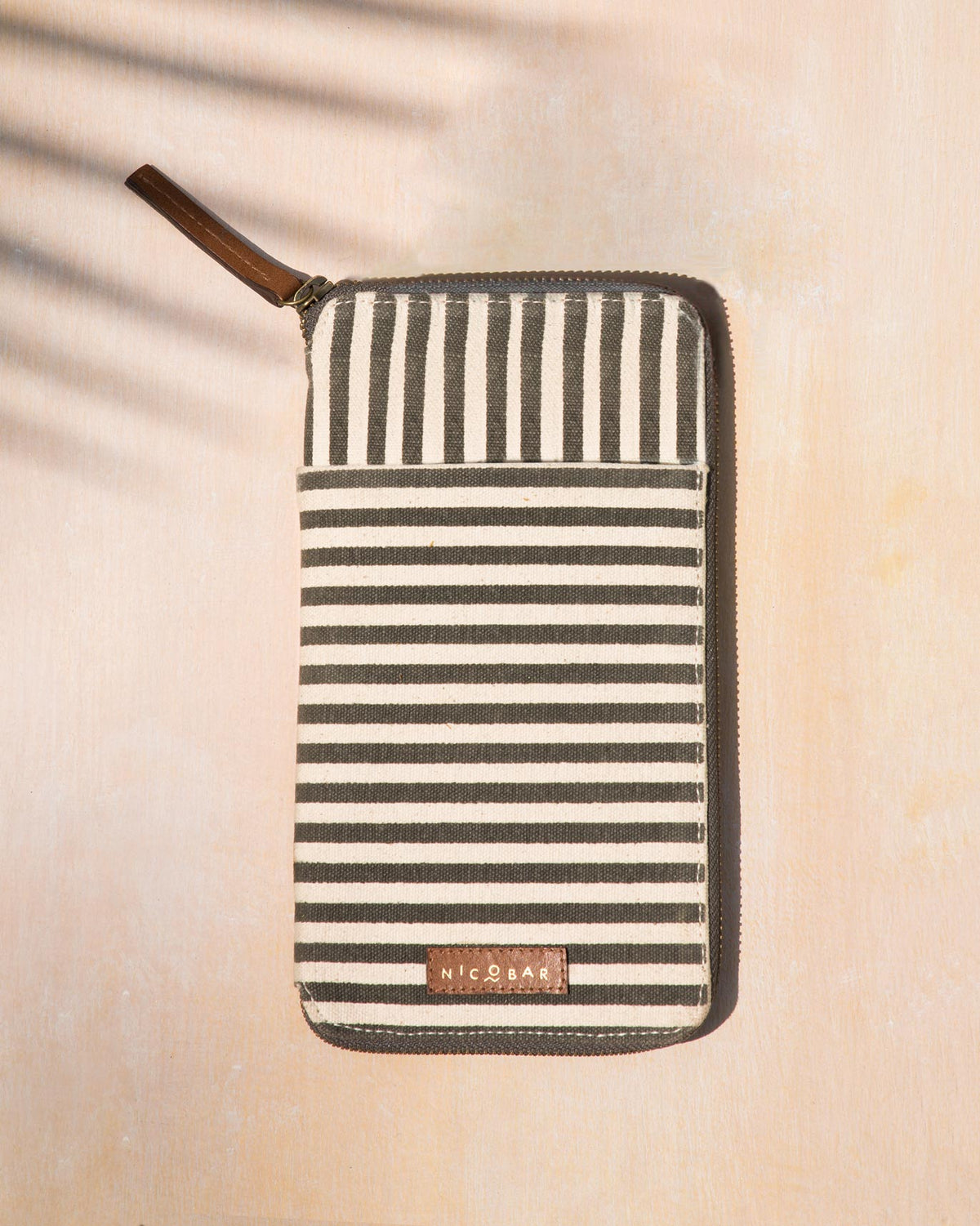 - In a chic charcoal stripe that's come to be our signature, this sleeve it perfect to hold your boarding pass, tickets, cash, and ID