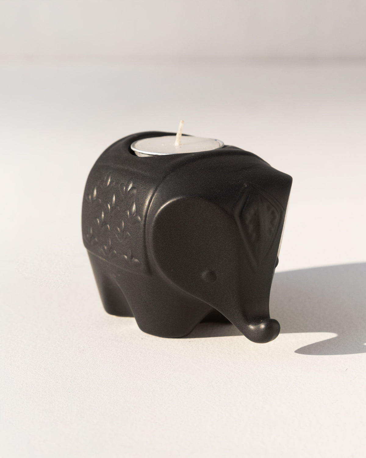 - Bring a little bit of the outside inside your home with this perfectly zen elephant votive made in night-hued stoneware.