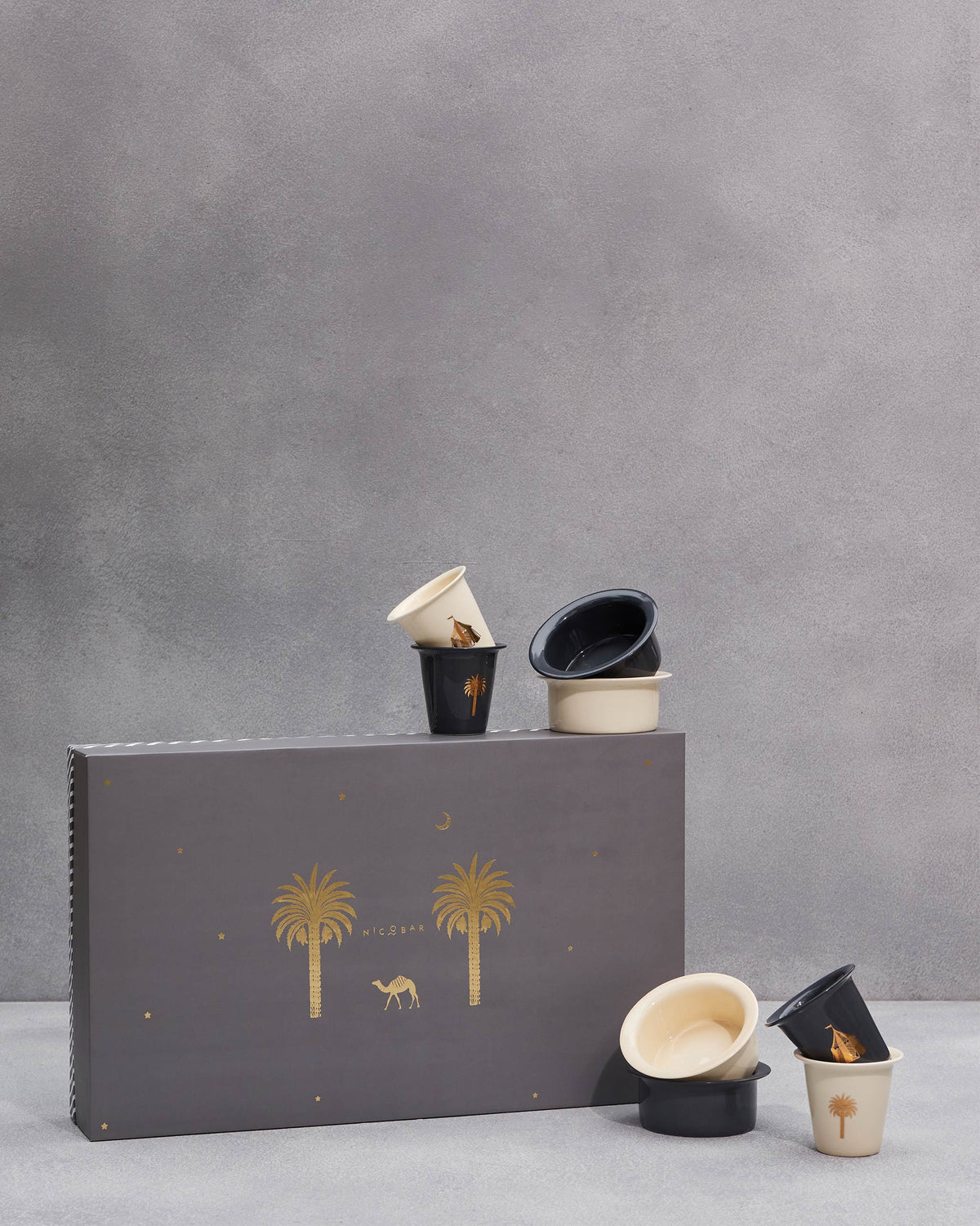 • Perfect for filter coffee lovers, give the gift of strong brews with the Sahara Filter Coffee Set. The four piece set comes with two ivory tumblers and two charcoal coffee tumblers with motifs from our travels to Morocco.
