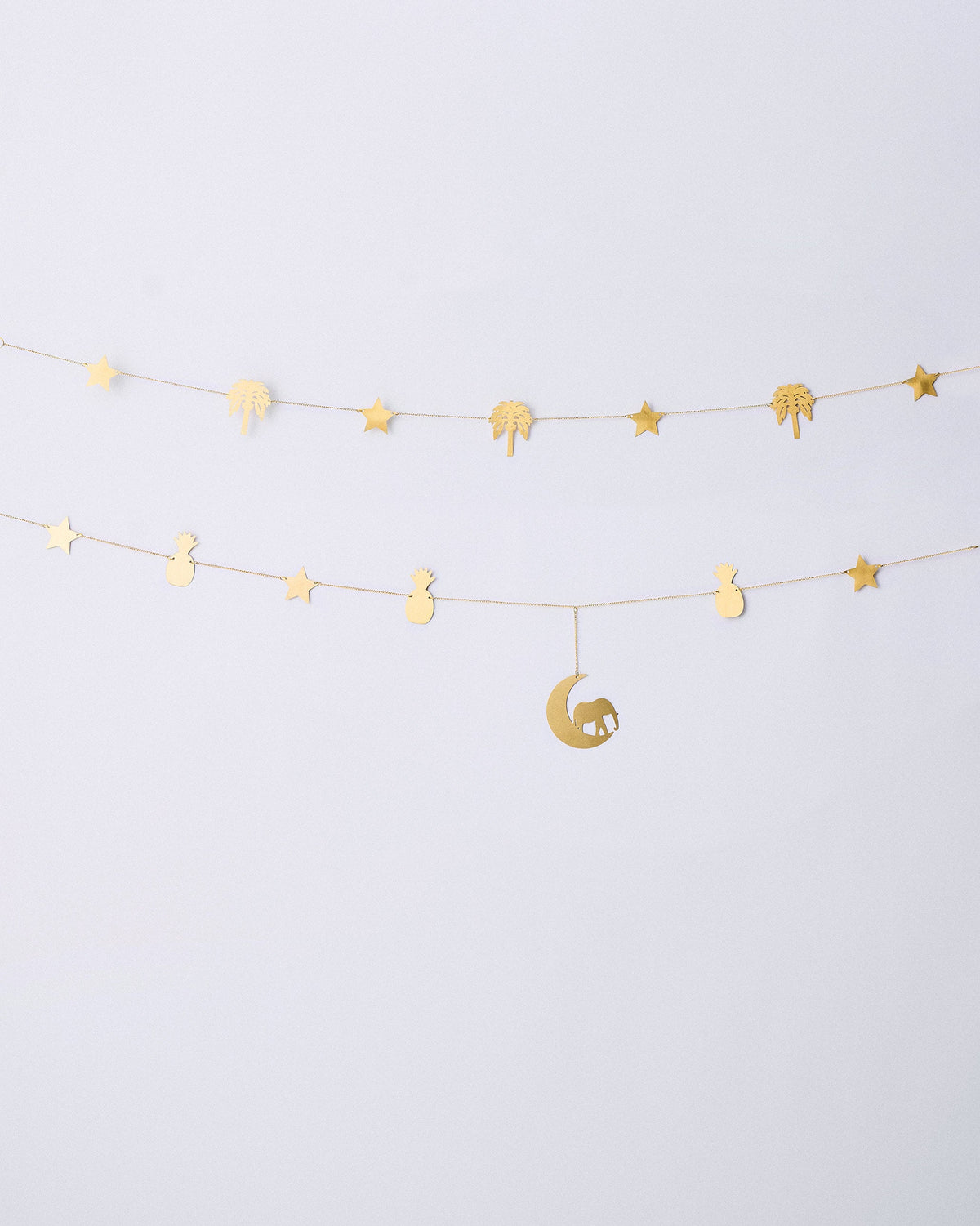 • Cut in gold-finished brass, the Island Toran is perfect to hang up in your doorways or empty corners for an added twinkle.