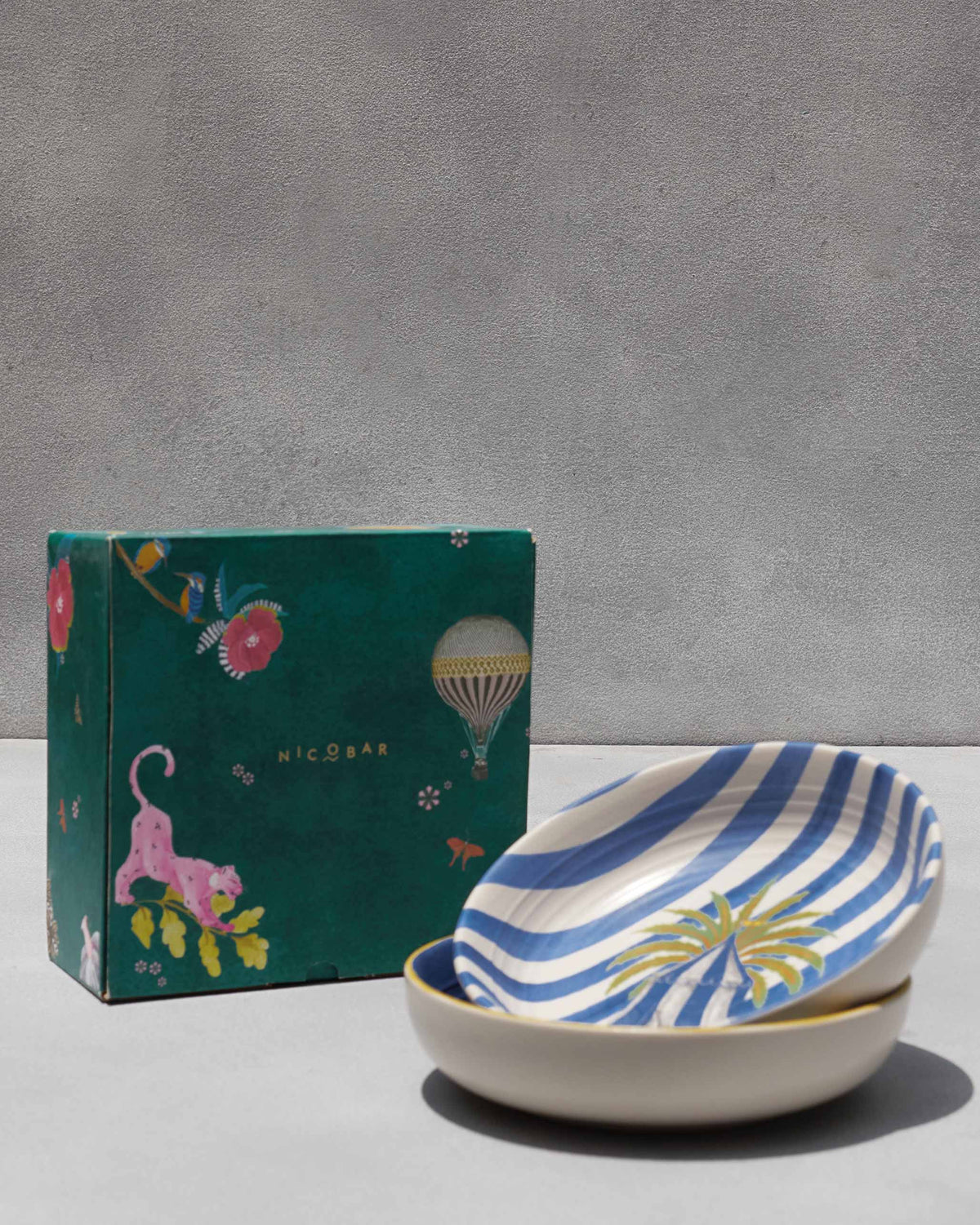 - The breezy palms of Morocco, tented desert nights, traipsing camels and vivid blue pottery inspires the Sahara Shallow Bowls.