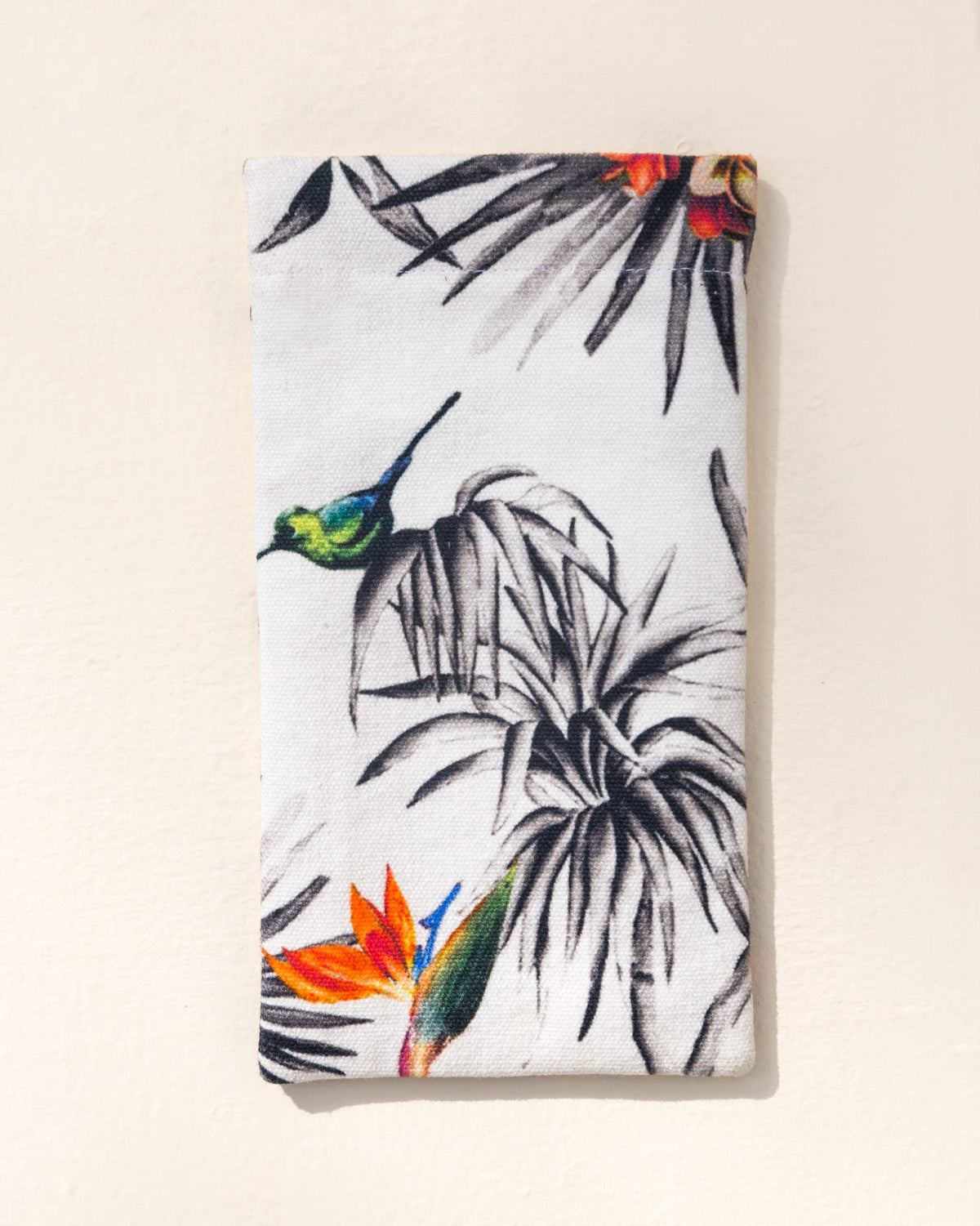 - This spectacle case in in hardwearing canvas is printed with floral motifs, and features a simple push open enclosure.