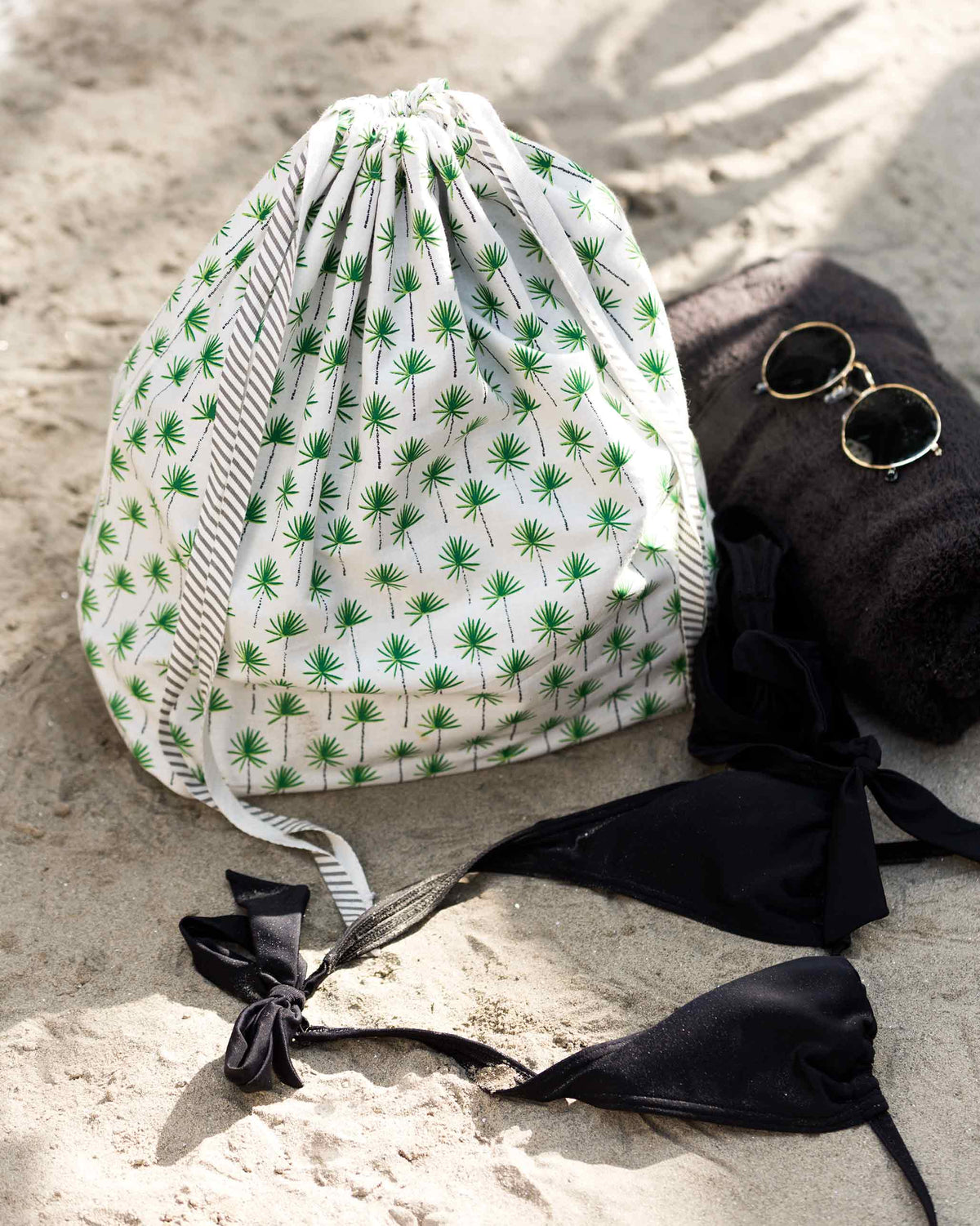 - So much of our vacation is spent by the seaside taking in the view and enjoying the salty sea breeze, so it's only fitting we've designed this wet sack with a waterproof lining (and printed palms) to keep all your wet bits wet, and your dry bits dry