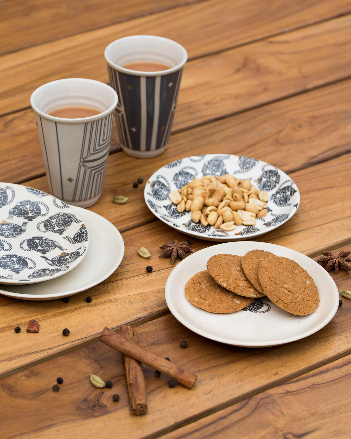 - Made from glazed stoneware they come in a neutral oatmeal featuring an oriental teapot motif and speckles of gold