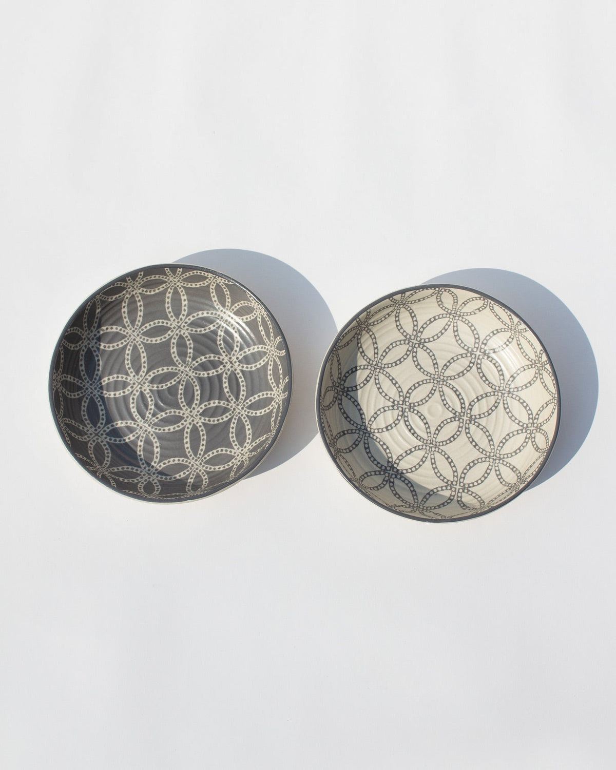 - Adorned with a graphic pattern, this bowl is perfect for intimate gatherings and can be used to hold servings of rice, noodles, or hearty one-pot meals.