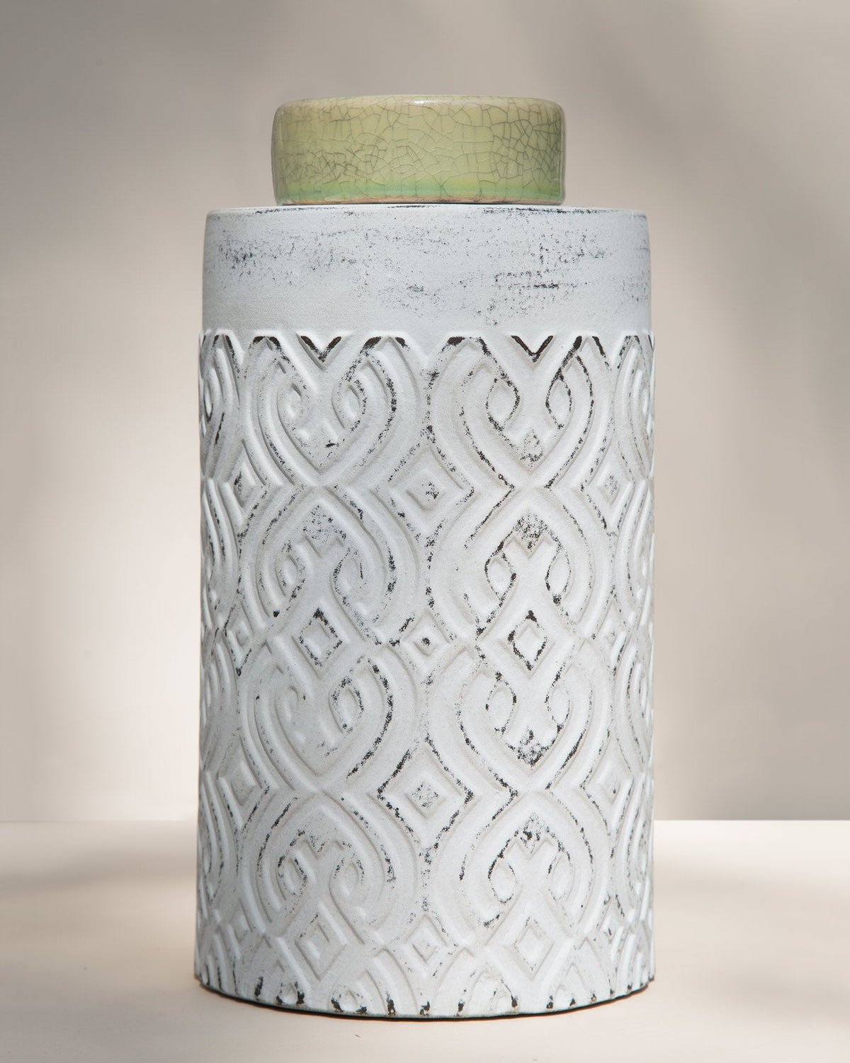 - Use our earthenware jar in rustic ivory (with a lime green lid) for anything from loose flour, to even blooms