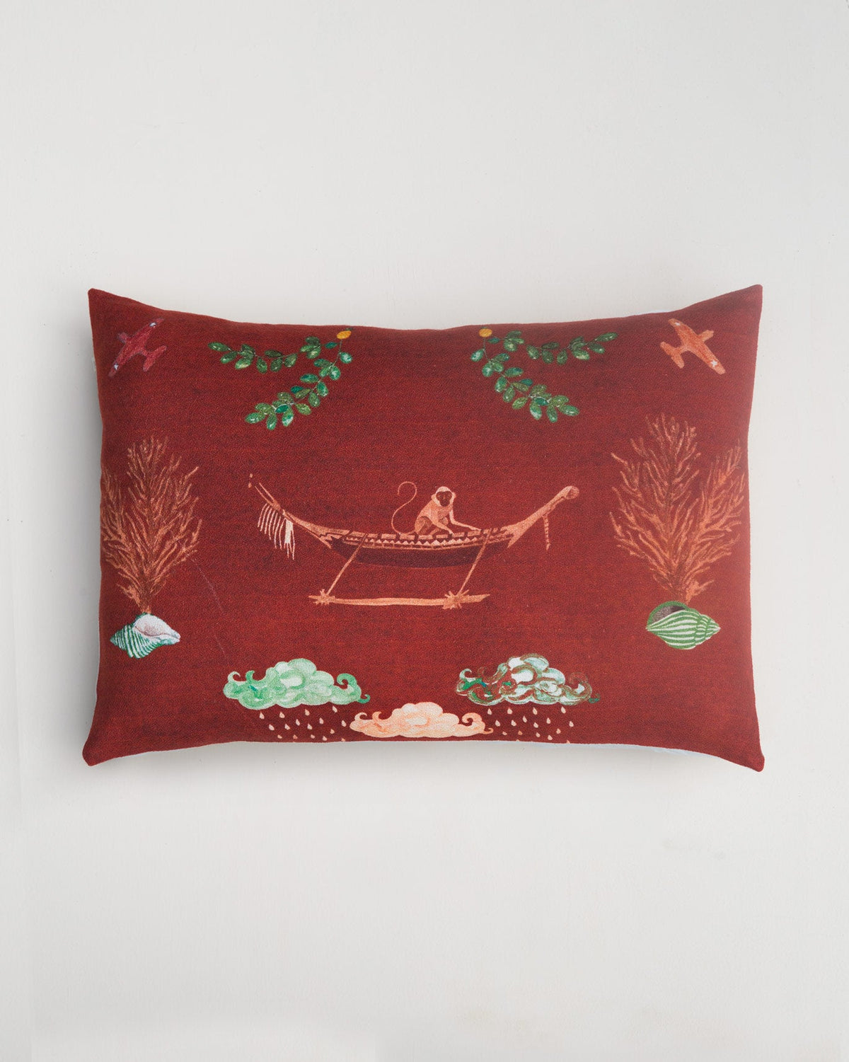 - Peppered with Nicobar's whimsical take on all things tropical, our lumbar cushion comes in a brilliant crimson and features an envelope closure with ties