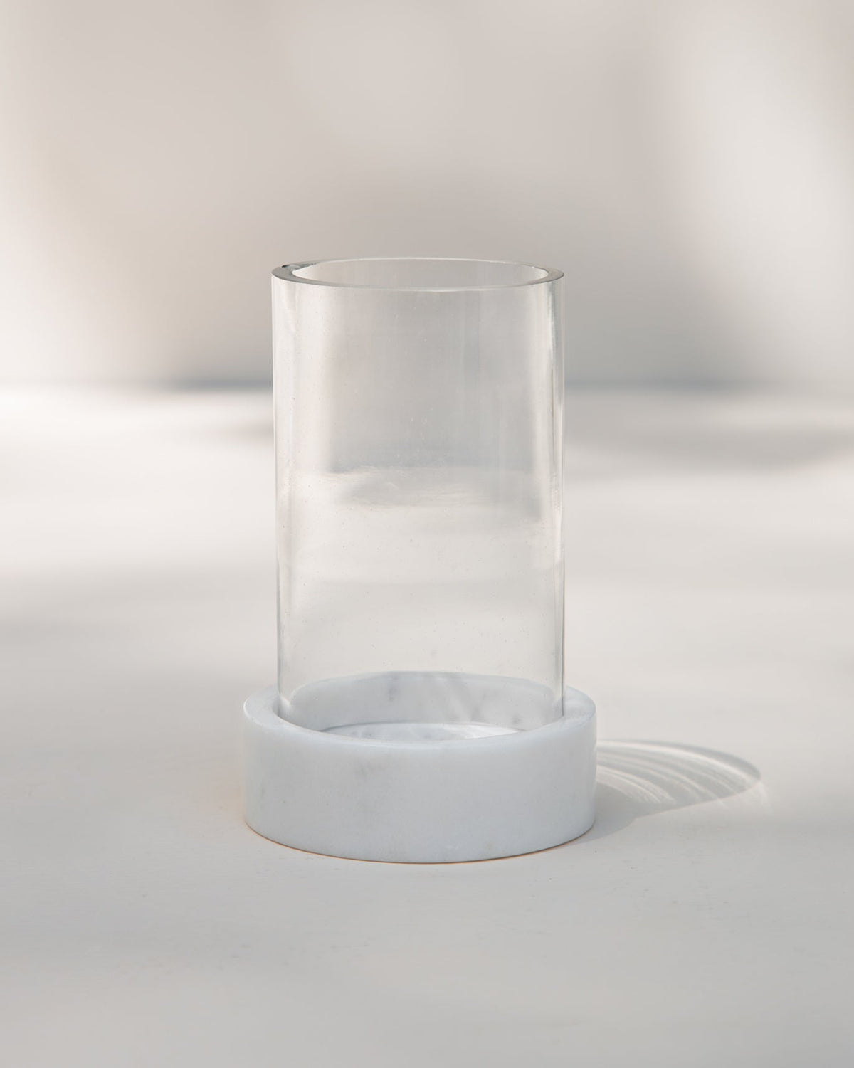 - The distinctive finish and texture of white marble paired with clear glass sets our hurricane apart