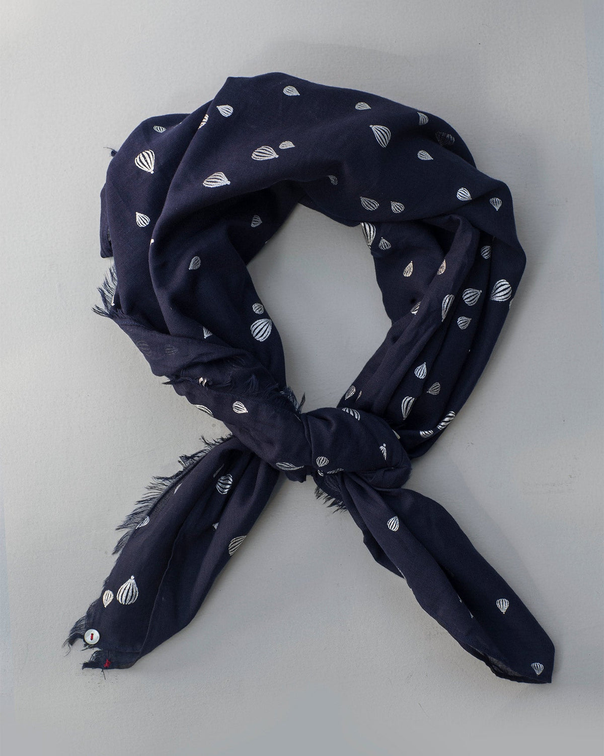 - In soft, lightweight mul, this navy scarf features silver foil-printed hot air balloons