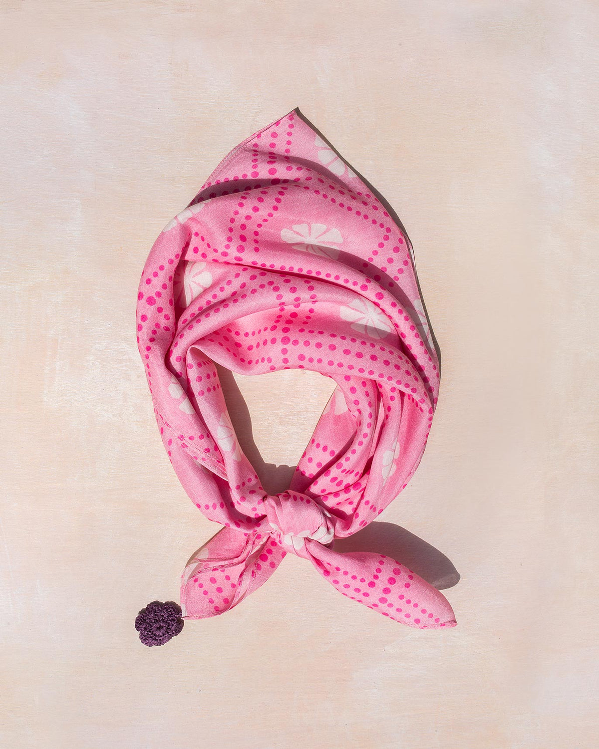 - Inspired by the tattoos worn by the banjaras, this is a dusty pink and white silk scarf with crochet flowers along the hem