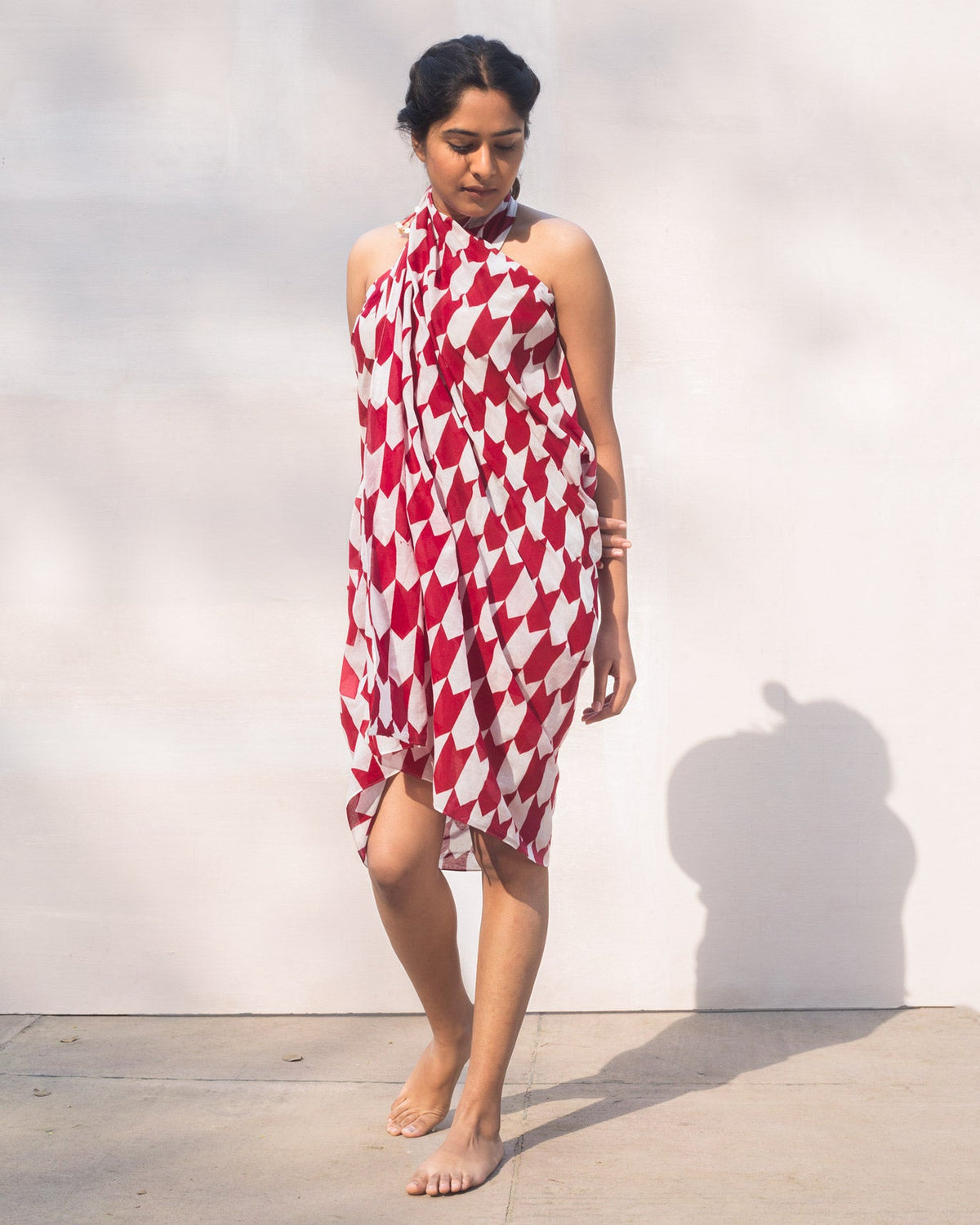 - It features a graphic red and white print inspired by the tents you'll find in Banjara communities