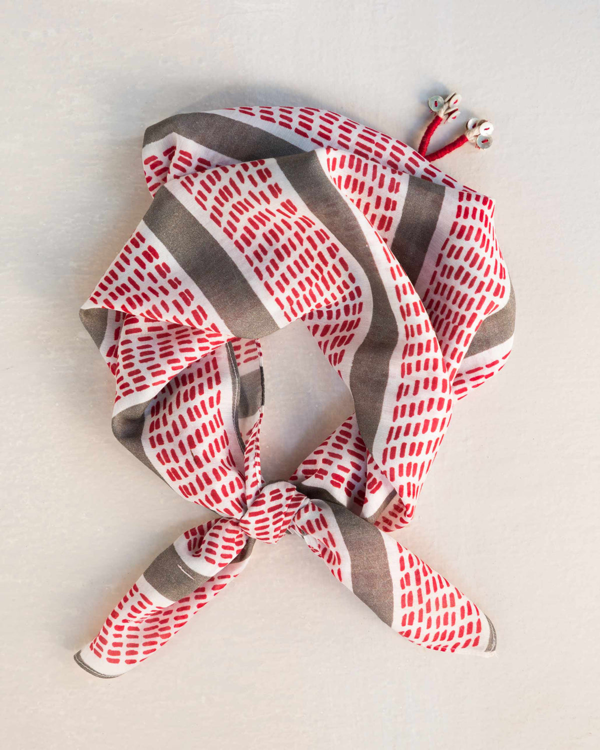 - This one with ruby and sand motifs printed on ivory silk is perfect for a very long summer