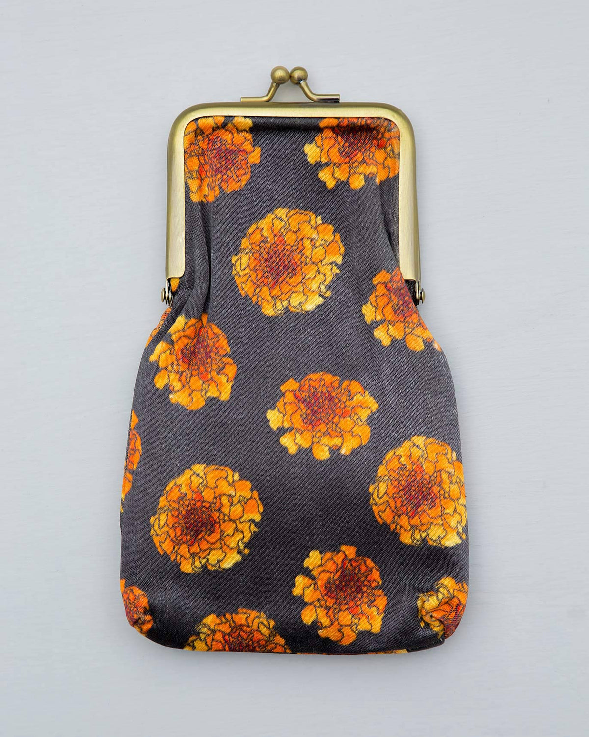 - Features our charming marigold print and a snap closure, making it easy to slip into any bag.