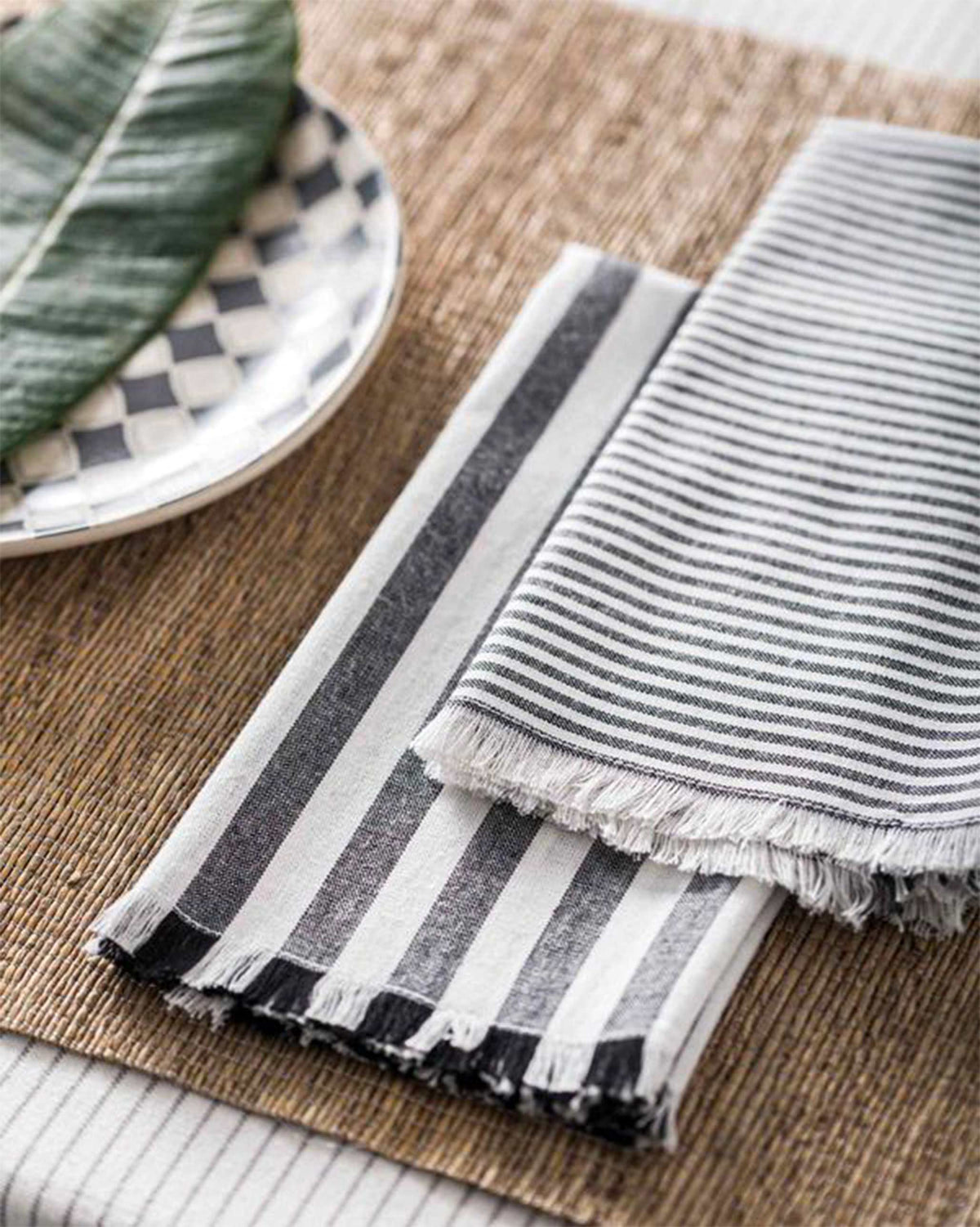 - A contrasting set, our dinner napkins come in hand woven cotton featuring pinstripes and bolder stripes in a graphic combination of white and charcoal.