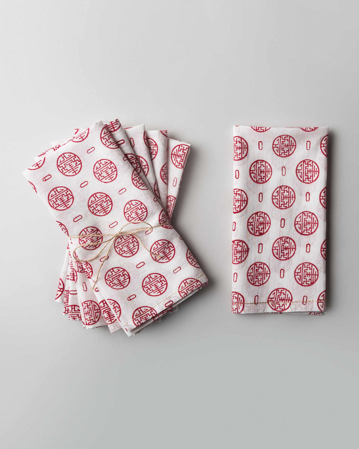 • Block-printed with little medallions, these dinner napkins are meant to prop up every kind of meal
