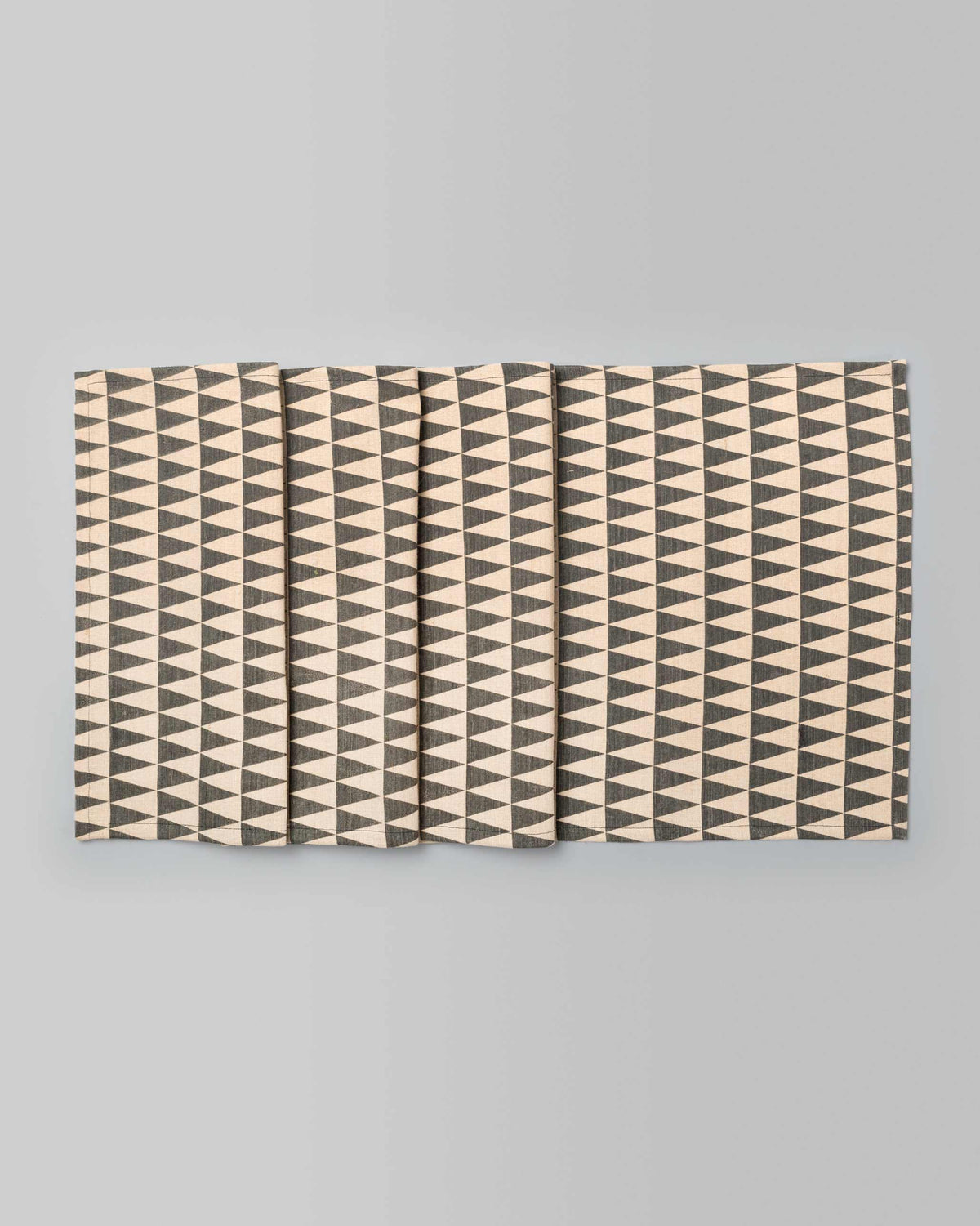 - In jute cotton, this comes in Nicobar's signature oatmeal and charcoal triangle print