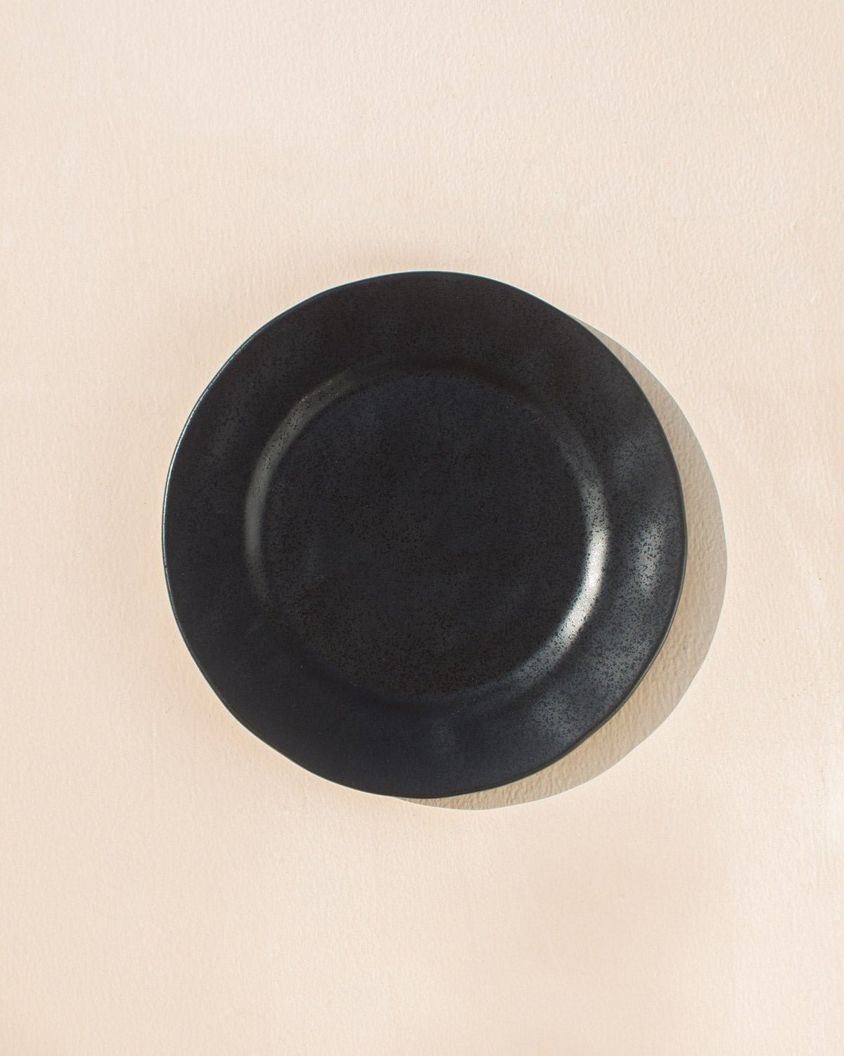 • Mirroring the night sky, this gently speckled matte black dinner plate is an in-house favourite