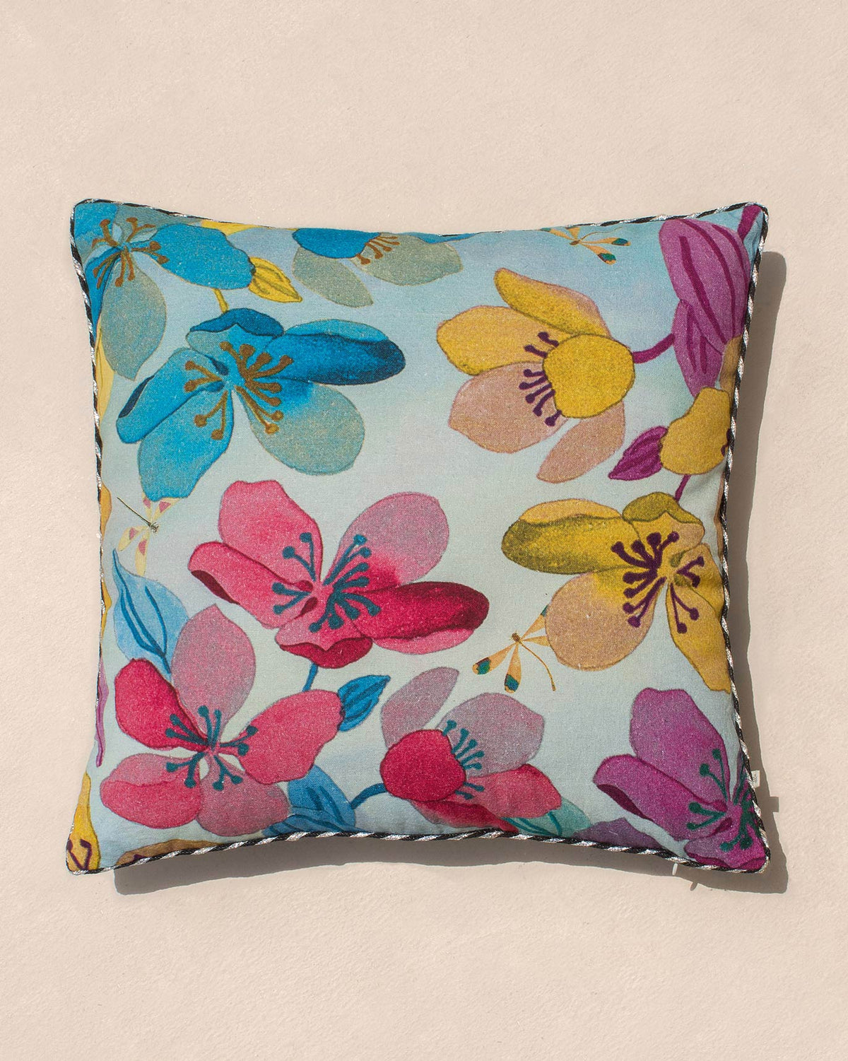 • Fresh and summery florals run across this reversible cushion that draws from the wandering spirit of nomadic gypsies