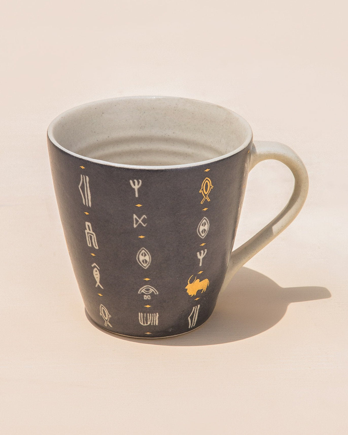 - Inspired by the ancient script of Harappa, this mug comes in earthy tones of grey and white with a glimmer of gold.