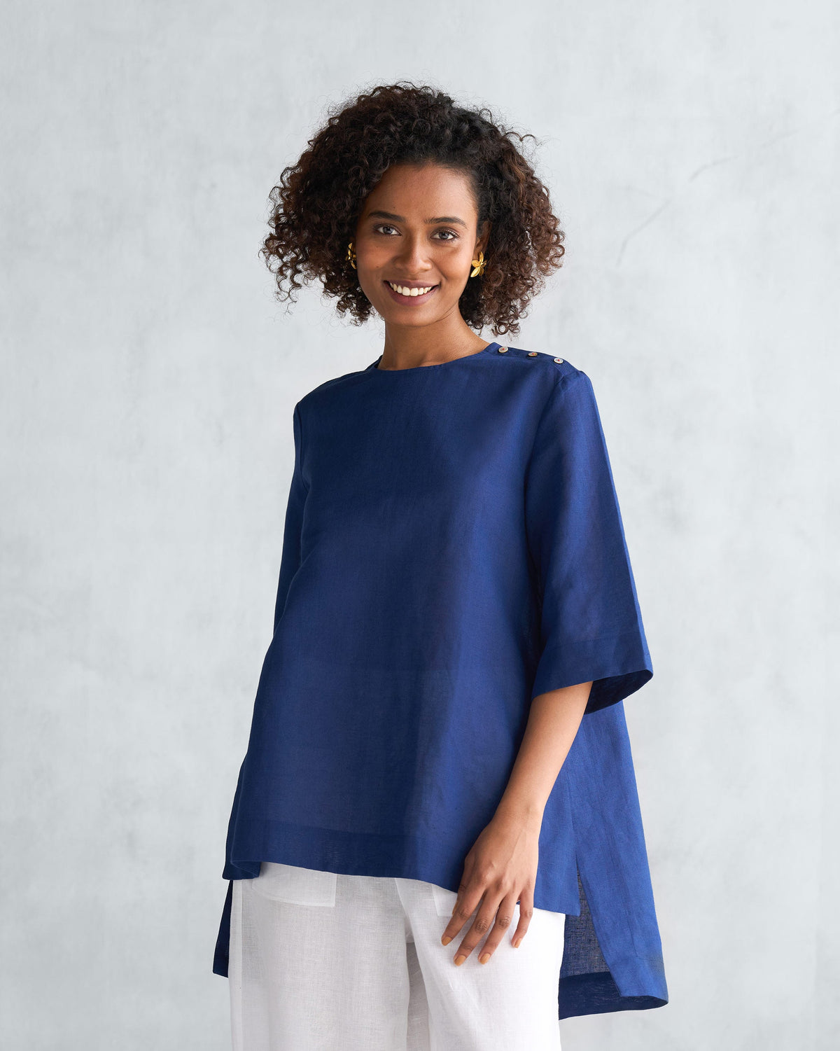 • Crafted with comfort and versatility in mind, this top is easy to pair with everything else in your wardrobe. Throw on some jeans, a pair of trainers, or kohlapuris and our Weekend Trousers and you're good to go.