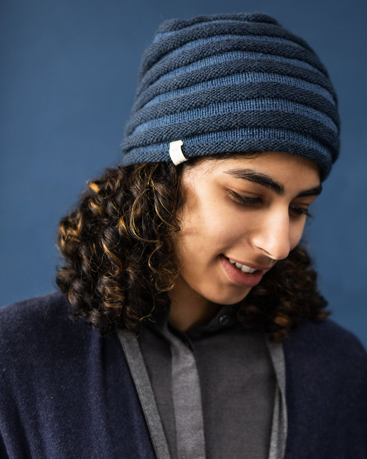 - A cap that's all kinds of cosy-hand-knitted in ultra-soft merino wool that's dyed in natural indigo
