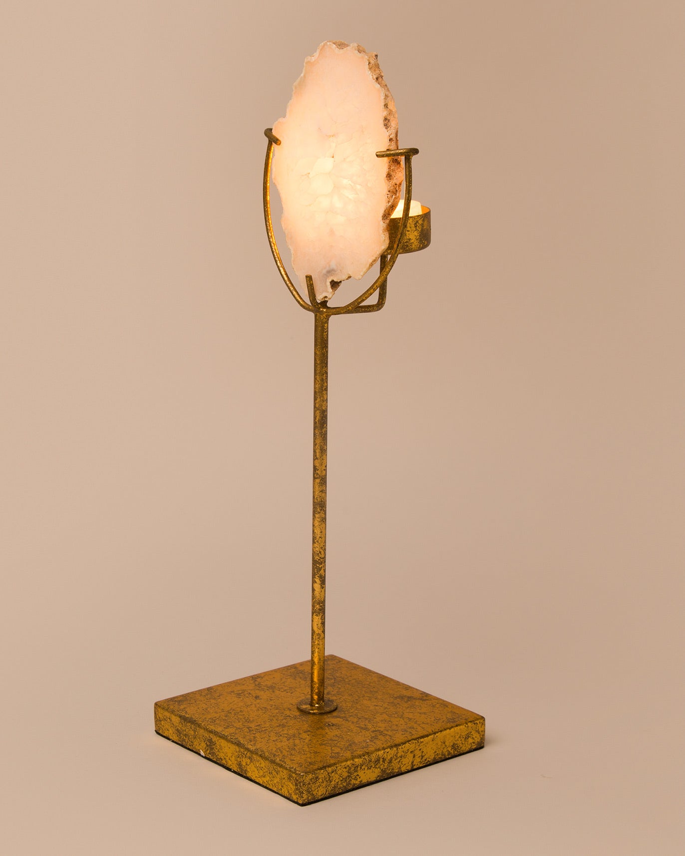 - In dull gold and the natural milky hue of agate, this large tea light holder will bring a little zen (and a soft moody vibe) to your home.