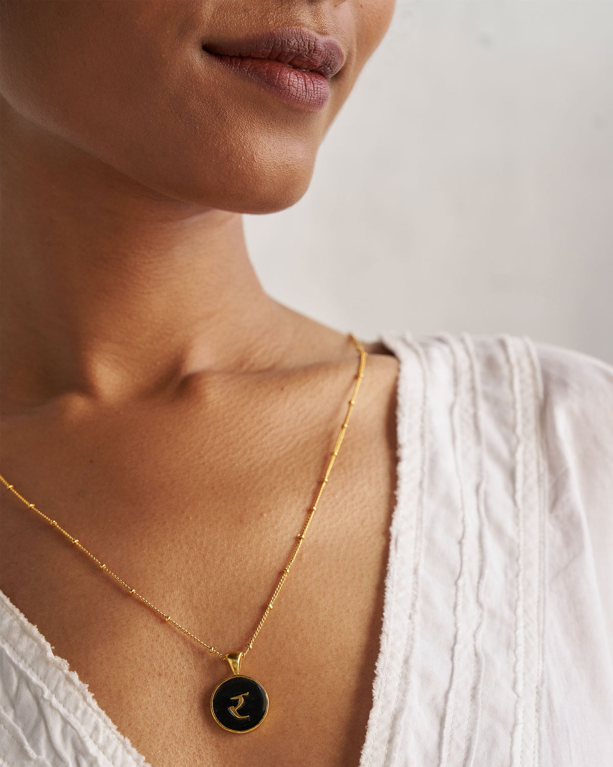 • With handwritten Devanagari akshar on one side and Roman letter on the other, this gold-plated charm with black enameling is the ideal gift for when you want to make it personal.
