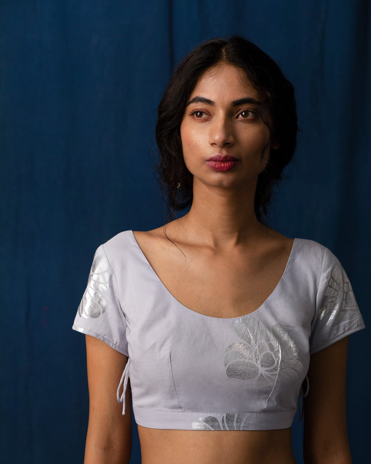 - Comes with silver foil print detail, plus drawstring ties on either sleeves.